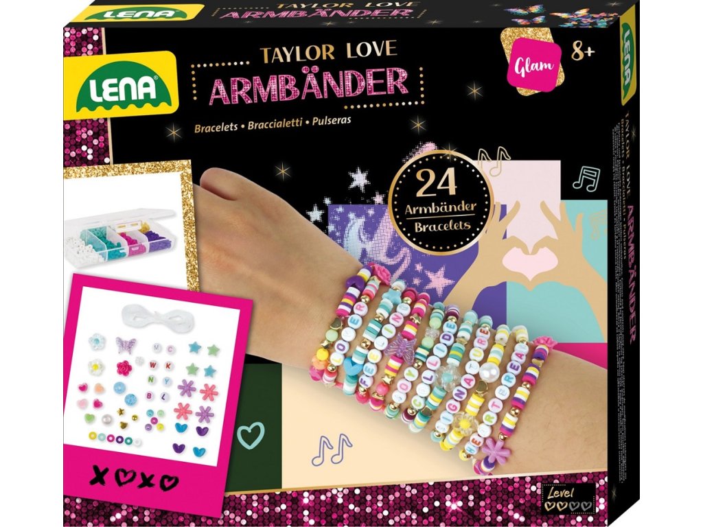 Vytvoř si vlastní originální náramky! Kreativní sada LENA Taylor Love je ideální hračka pro všechny malé parádnice, které milují tvoření, korálky a módní doplňky. Děti si mohou navrhnout až 24 barevných náramků a ozdobit je podle své fantazie. Tato korálková sada pro děti obsahuje vše potřebné pro výrobu náramků – písmenkové korálky, barevné polymerové korálky a elastickou šňůrku.Děti si mohou vytvořit náramek se svým jménem, oblíbeným slovem nebo tajným vzkazem, přidat srdíčka, hvězdičky, květinky a další krásné korálky. Díky podrobnému barevnému návodu je výroba snadná a zvládnou ji i začátečníci.Tato tvořivá korálková sada podporuje jemnou motoriku, kreativitu, fantazii a dovednost kombinovat barvy. Ideální dárek pro děti od 8 let, skvělý nápad na narozeniny, Vánoce nebo jako kreativní hračka na prázdniny. Skvělé pro holčičky, které milují kreativní hračky, DIY tvoření a módní doplňky! Hlavní vlastnosti: kreativní sada na výrobu náramků pro dětiaž 24 náramkůpísmenkové, barevné a polymerové korálkyelastická šňůrka pro snadné navlékánískvělá hračka pro rozvoj kreativity a jemné motorikysoučástí je podrobný barevný návod krok za krokemvhodné pro děti od 8 letvýborný dárek pro malé šperkařky a milovnice tvoření