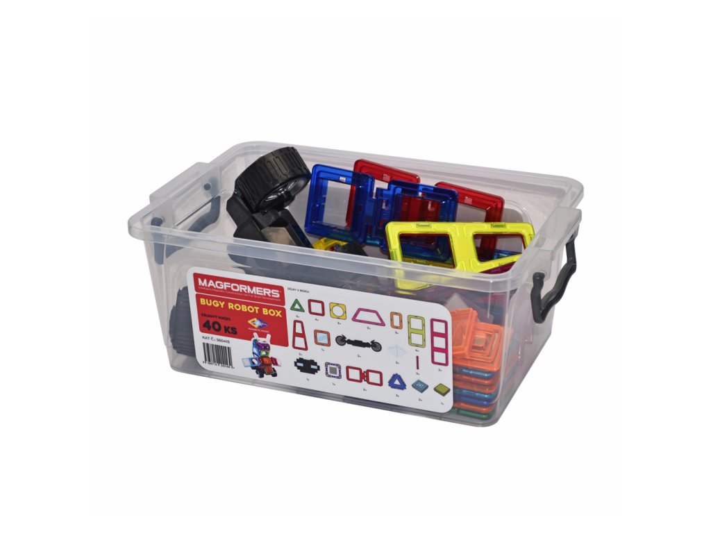 Univerzální box s možností stavění neuvěřitelného množství pojízdných robotů, bugyn, náklaďáků či fantaskních kosmických vozítek.