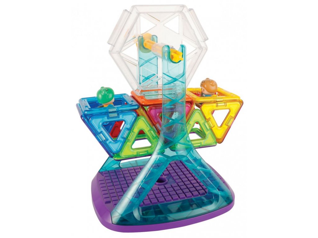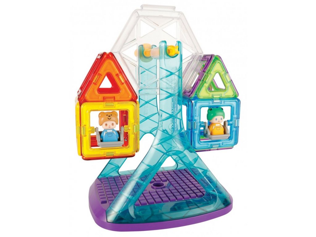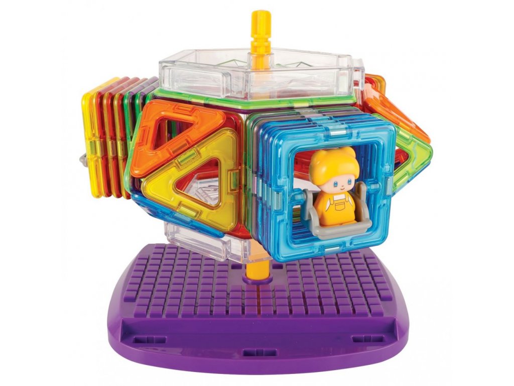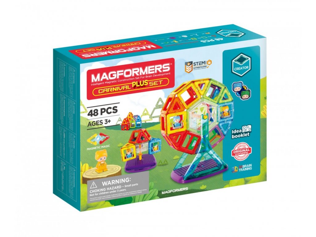 Magformers Carnival PLUS je tematická stavebnice, ze které lze sestrojit mnoho variací točících se pouťových atrakcí (houpačka, ruské kolo, kolotoč). Dva čtverce mají protáčivé sedačky pro postavičky jásajících dětí, které lze do jakékoliv atrakce zabudovat jako skutečné pasažéry. Obsahuje dostatečný počet dílků i na stavby, které postavíte z nižší řady stavebnic, např. Magformers-30. Pokud již všechny magnetické dílky naopak máte, stačí si přikoupit samostatné "Carnival příslušenství" (ovšem ve starší verzi).