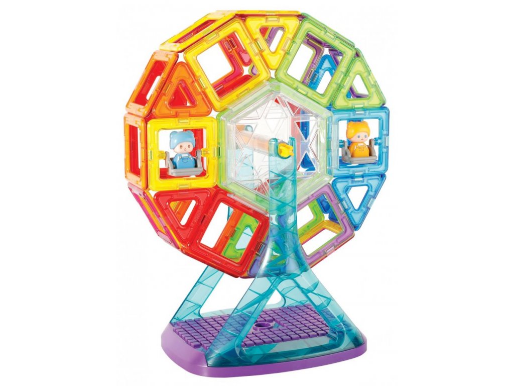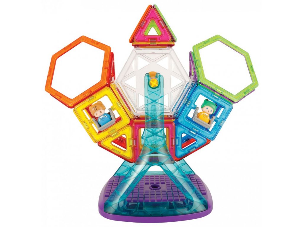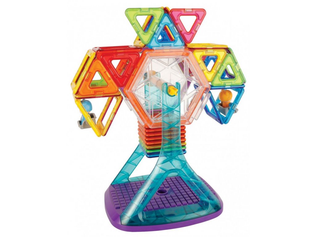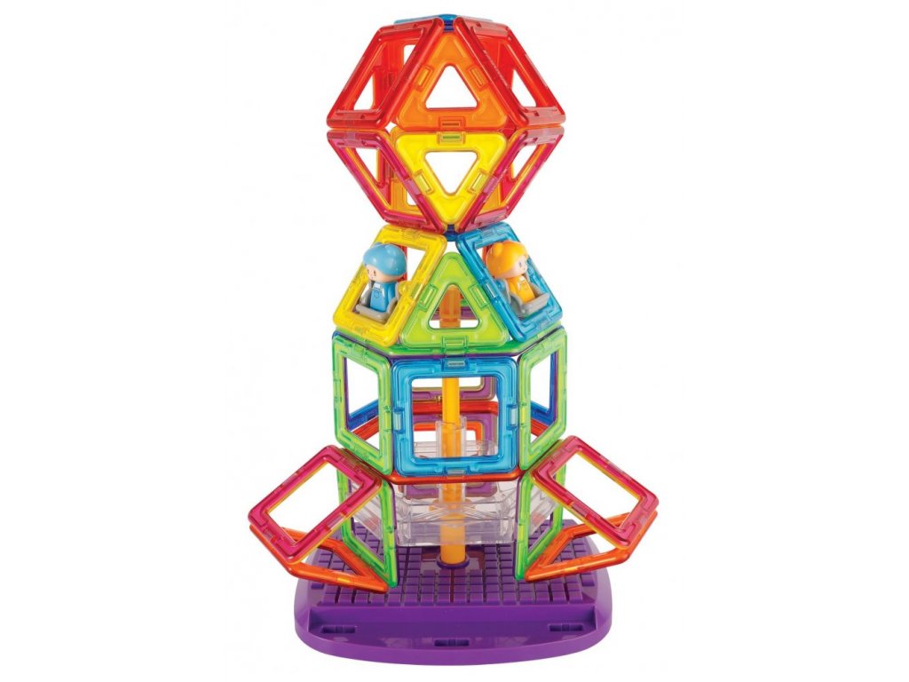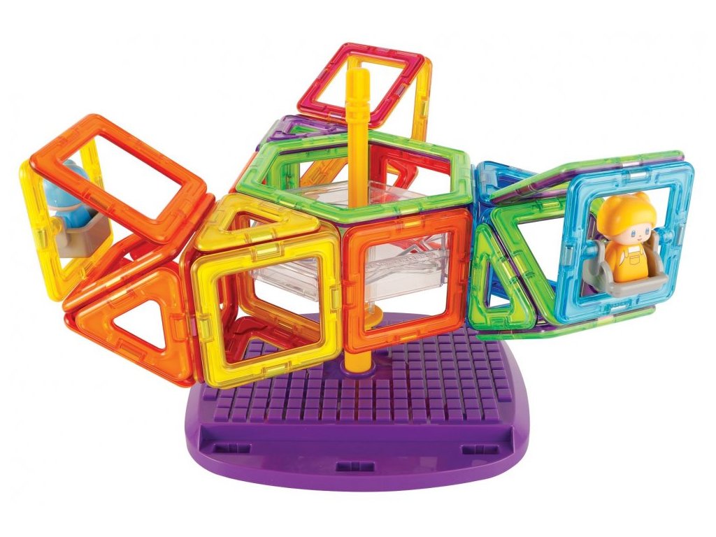 Magformers Carnival PLUS je tematická stavebnice, ze které lze sestrojit mnoho variací točících se pouťových atrakcí (houpačka, ruské kolo, kolotoč). Dva čtverce mají protáčivé sedačky pro postavičky jásajících dětí, které lze do jakékoliv atrakce zabudovat jako skutečné pasažéry. Obsahuje dostatečný počet dílků i na stavby, které postavíte z nižší řady stavebnic, např. Magformers-30. Pokud již všechny magnetické dílky naopak máte, stačí si přikoupit samostatné "Carnival příslušenství" (ovšem ve starší verzi).