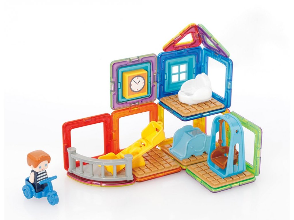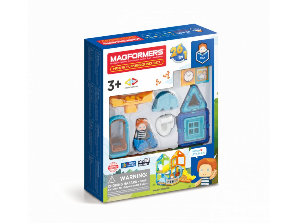 Obsahuje 17 magnetických tvarů a 16 funkčních doplňků vč. malého Maxíka.