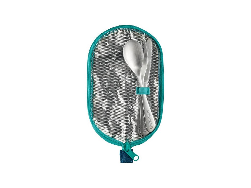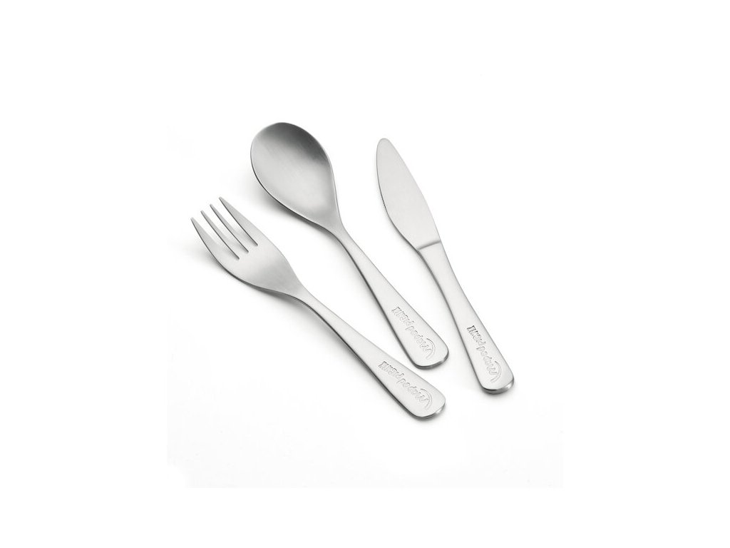 Příbor z nerezové oceli v pouzdře z kolekce Concept Kids v zábavném dětském designu. Pouzdro obsahuje lžičku, nůž a vidličku - délka příboru je 15,5 cm. Textilní pouzdro je na zip a jako vnitřní materiál má hliníkovou fólii pro snadné čistění. Příbory je možné mýt v myčce.