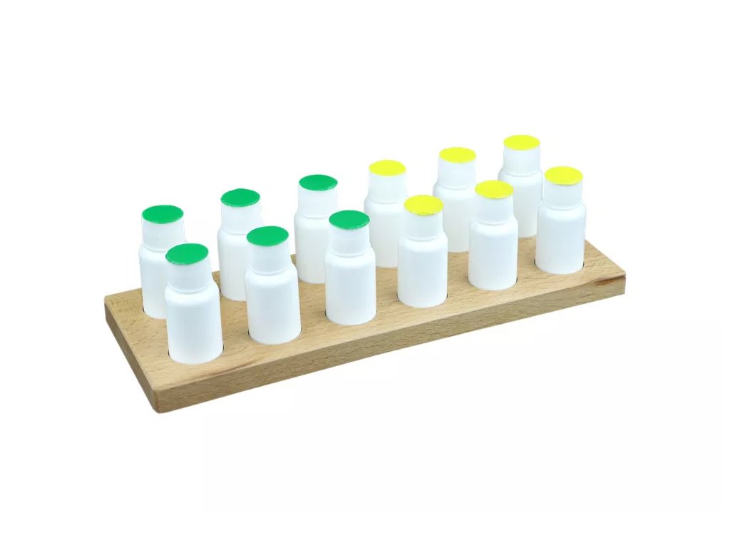 Sada je složená z 12 neprůhledných prázdných dóz, do kterých můžete vložit kuličky vaty napuštěné látkami různých vůní nebo koření. Vršky jedné dózy z páru mají vždy žluté označení.