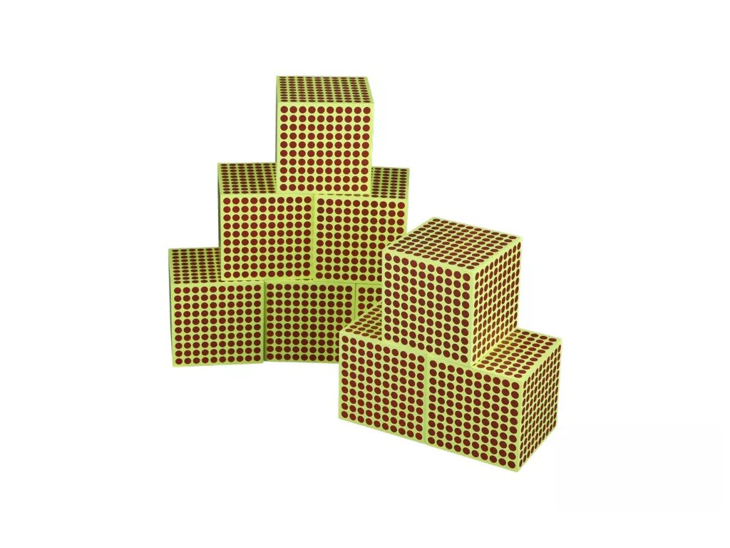 Montessori Devět dřevěných krychlí znázorňující 1000