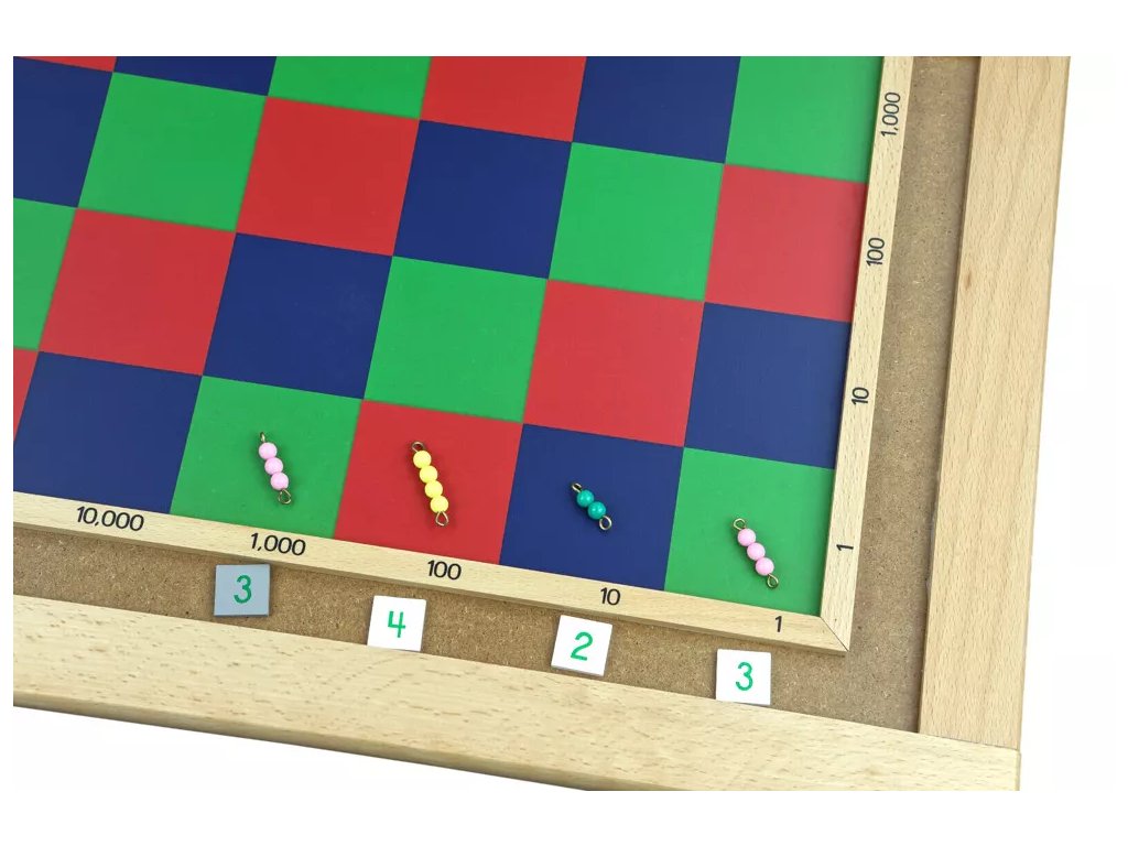 Montessori Korálky k Barevné tabuli pro násobení víceciferným činitelem