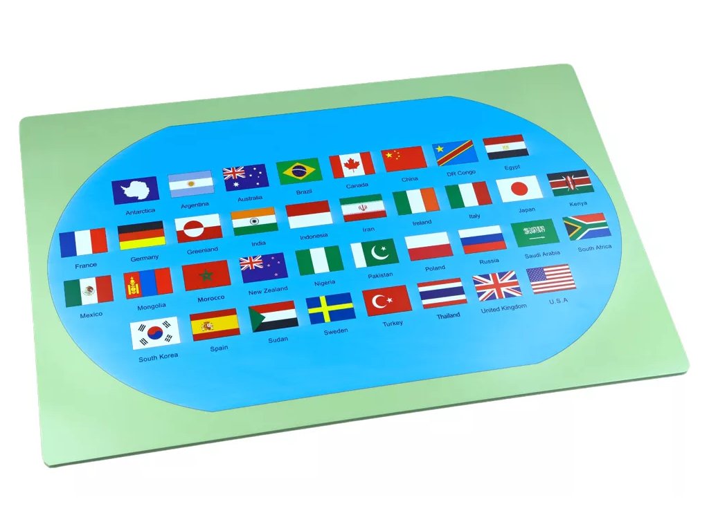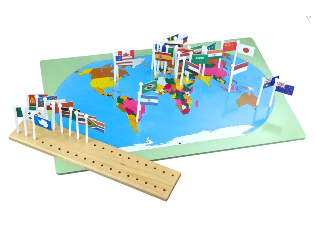 Montessori Svět - mapa s vlajkami (na stojánku)
