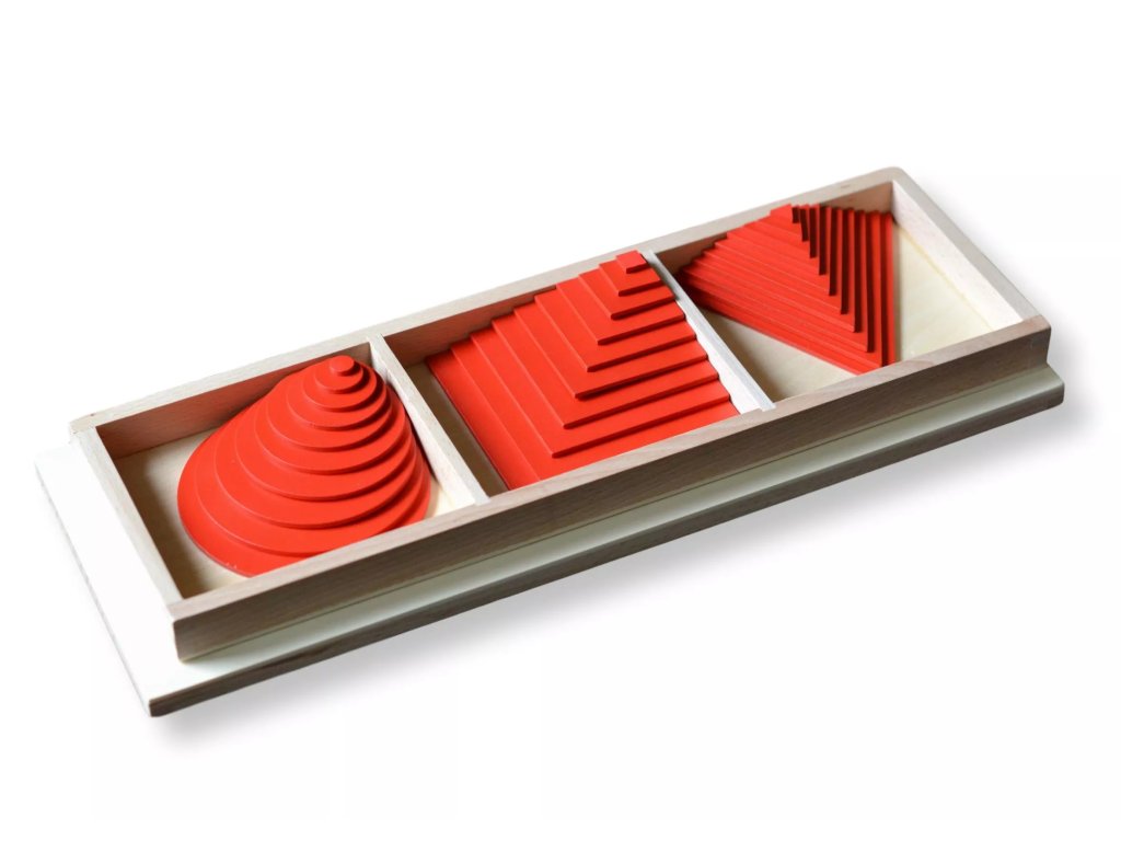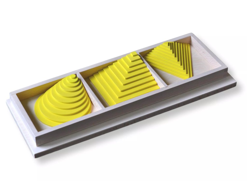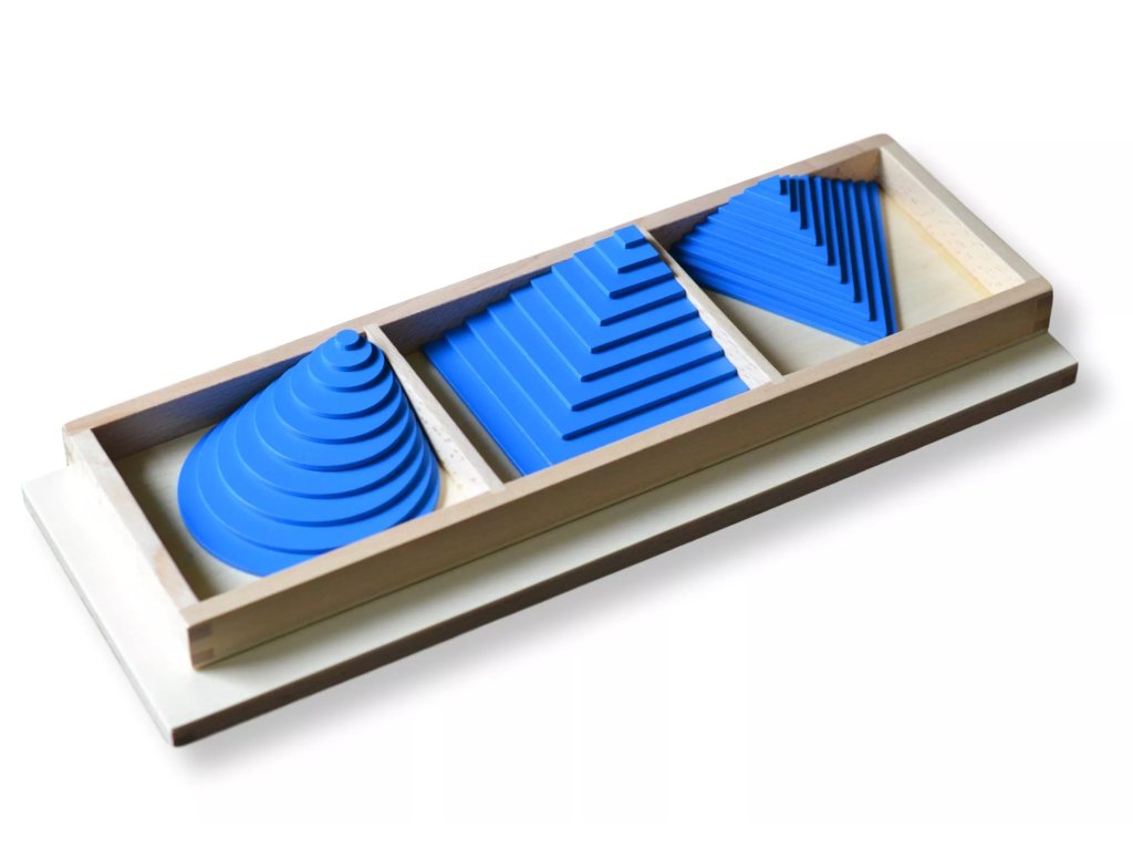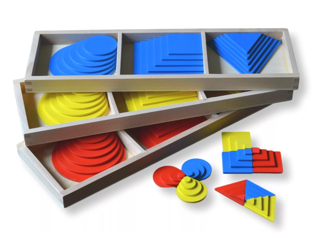 Vrstvené tvary jsou Montessori smyslovou pomůckou, která umožňuje dítěti objevovat různé kombinace geometrických tvarů.