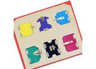 Rozměry: 8x6x0,5 cm Věk: 3+ Materiál: dřevo Baleno v plátěném pytlíku