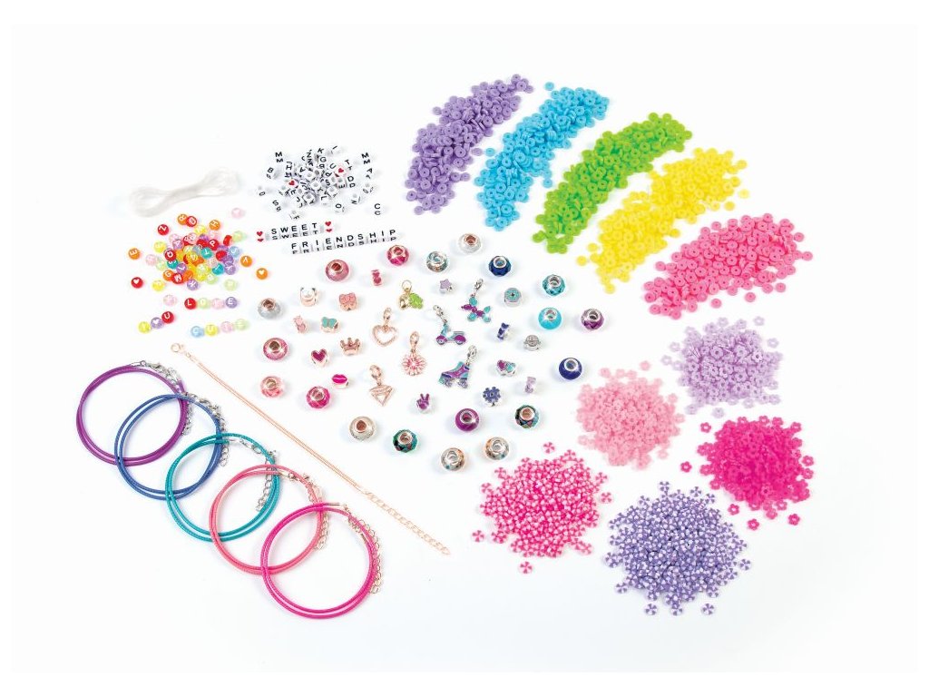 DIY výroba náramků na vrcholu módy! Vyrobte více než 30 náramků s přiloženou šňůrkou, řetízkem, různými přívěsky a více než 2100 korálky. Využijte celý výběr halo kouzel, heishi korálků a abecedních korálků k vytvoření náramků přátelství a obchodujte s přáteli... možnosti jsou nekonečné! Tato sada náramků je skvělým nápadem na dárek pro mladé módní nadšence, ať už k narozeninám, svátku nebo jen tak. Sestavování náramků přátelství rozvíjí jemné motorické dovednosti doplnění a umožňuje jim kreativně se vyjádřit. Tato aktivita je ideální pro děti ve věku 8+ a umožňuje jim být kreativní a prozkoumat svůj jedinečný styl. Obsahuje PlayTray pro snadné vytváření vzorů a organizování korálků před a během montáže.