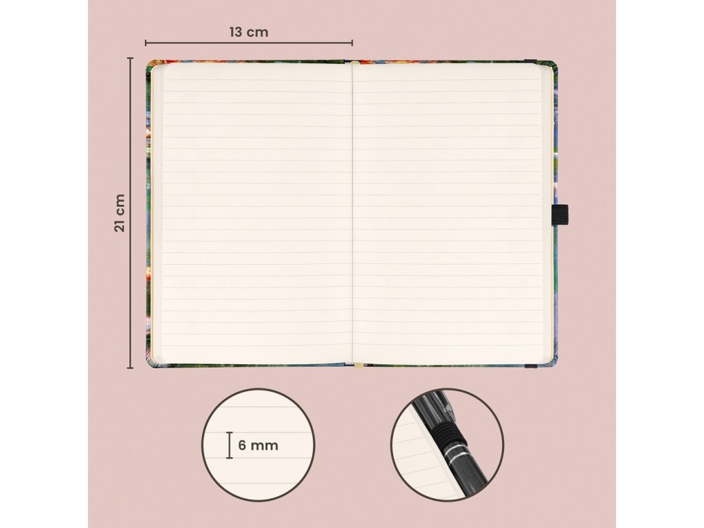 Linkovaný notes v tvrdých deskách se zavíráním na gumičku a s motivem díla rakouského malíře Gustava Klimta.