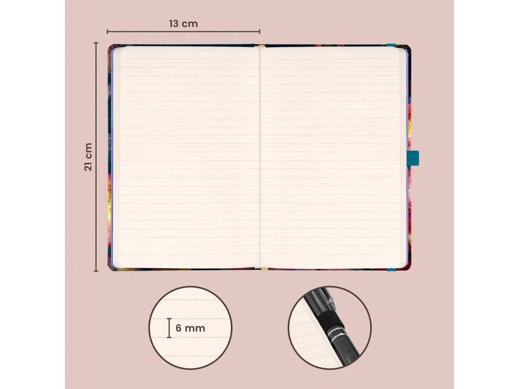 Kvalitní linkovaný notes v pevných deskách s uzavíráním na gumičku, poutkem na tužku a vnitřní kapsou na drobnosti. Uvnitř najdete 172 tečkovaných stran na žlutém papíře pro zapsání všech vašich nápadů. Linkovaný zápisník můžete použít jakodeník, psát do něj hluboké myšlenky nebo pracovní poznámky.