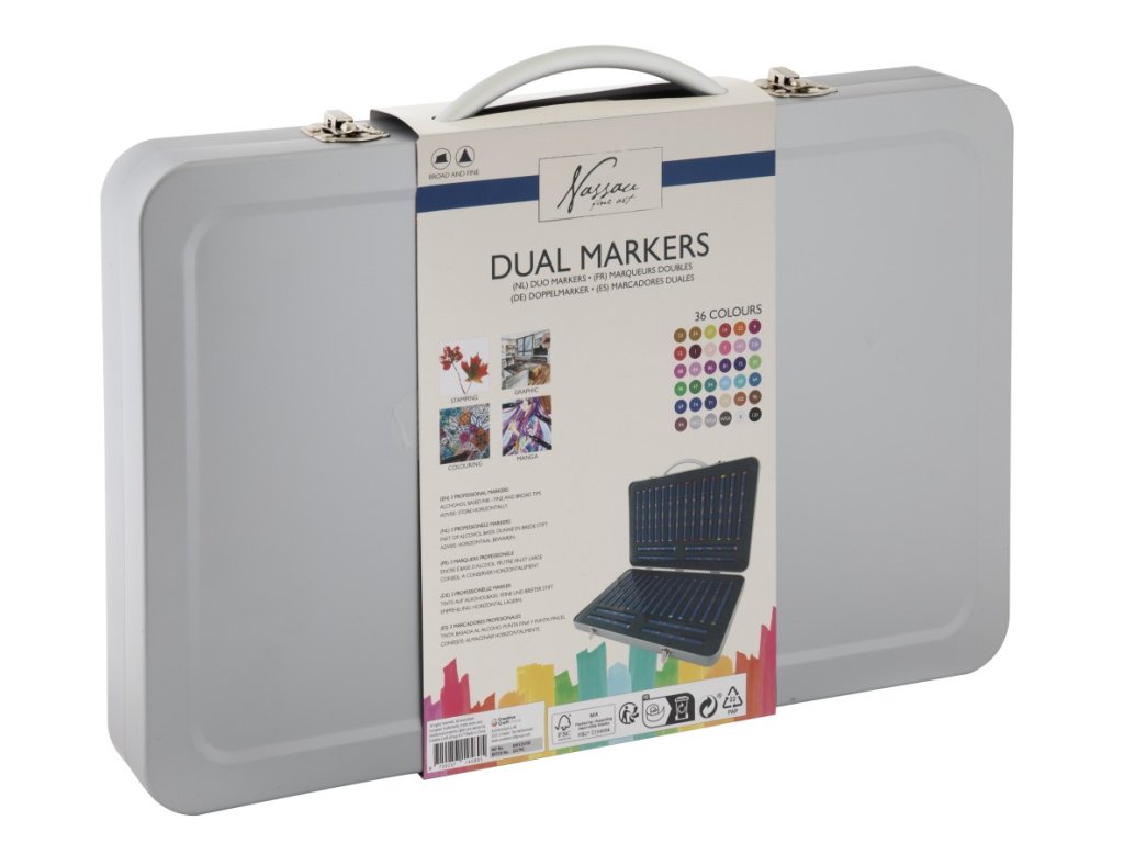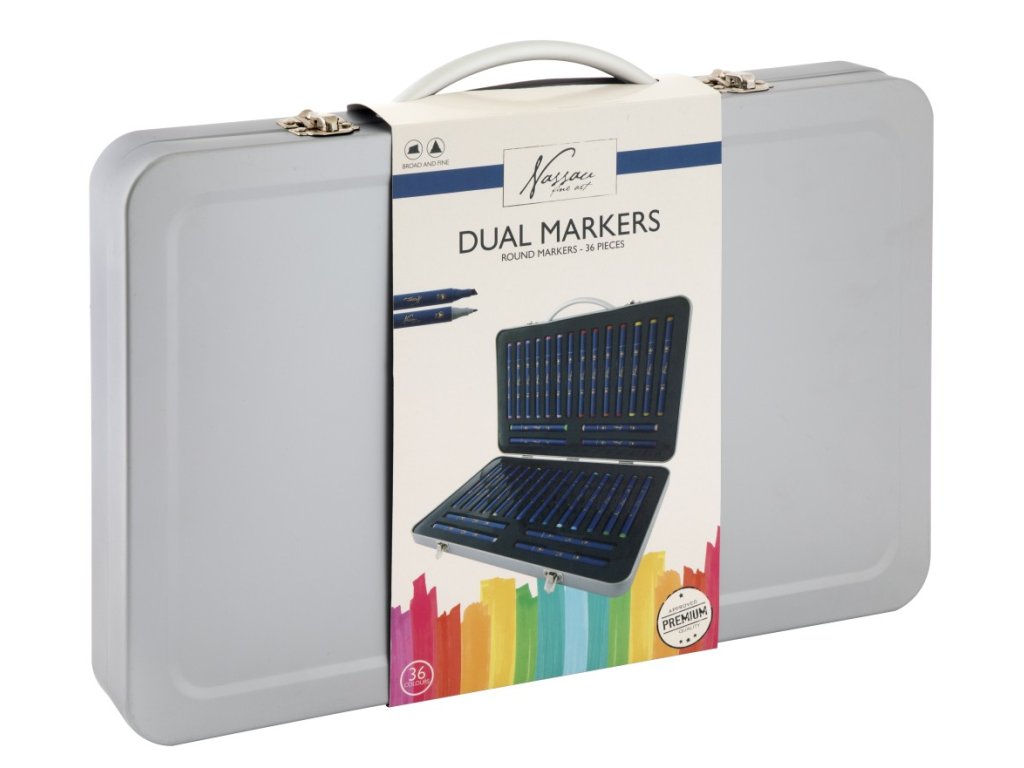 Oboustranné fixy 36 ks v kovovemé kufříku