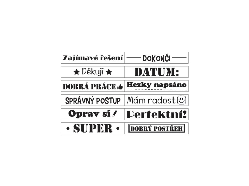 Razítko Roll' Stamp pro paní učitelky a pány učitele s 12 českými nápisy, které ušetří čas při kontrole úkolů, písemek i slohových prací. Funguje jako klasická datumovka, nápis se nastaví otočným pohybem a razítko se namočí do razítkovacího polštářku – doporučujeme rychleschnoucí razítkovací polštářky Aladine Izink Quick Dry. Rozměry jednotlivých razítkovacích ploch jsou 28 x 6 mm.