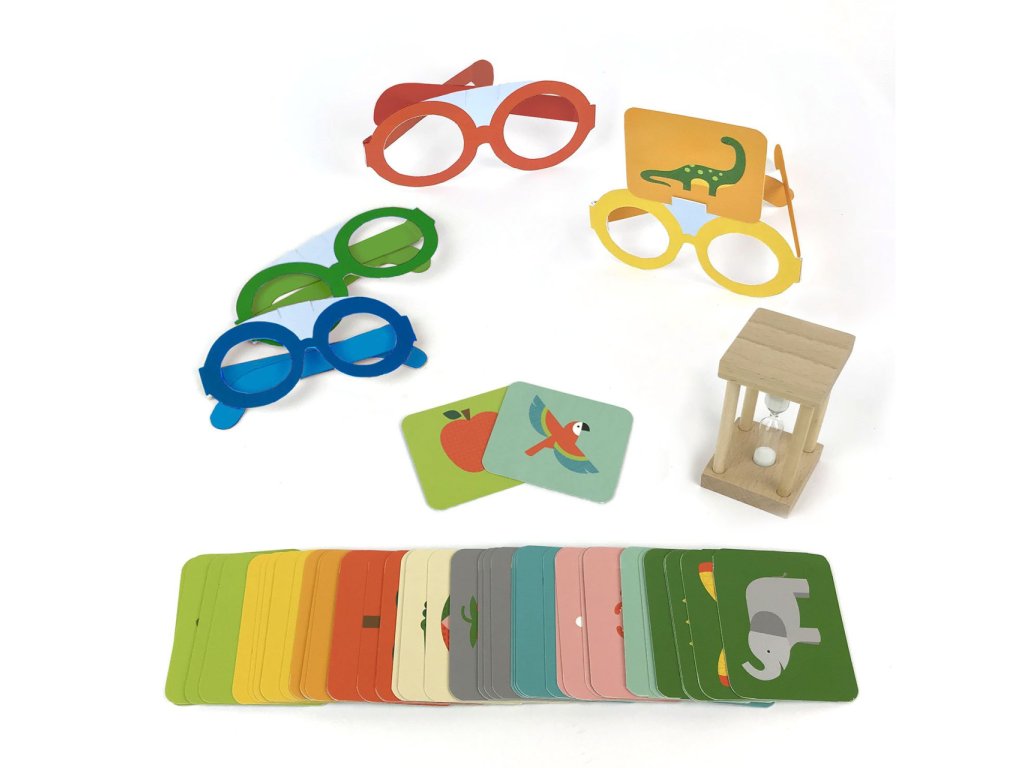 Jsem zvíře? Jsem objekt? Jsem velký/á? Vydávám zvuky? Tolik otázek, tak málo času! Rychlá hra pro celou rodinu, která Vám zaručí hodně smíchu a zábavy. Obsahuje 4 brýle s držákem na kartu, přesýpací hodiny a 50 barevných karet s obrázky. Hlavní vlastnosti: Hra pro 2 až 4 hráčePrůměrná doba hry 15 minutVyrobeno z recyklovaných materiálů, natištěno inkoustem ze zeleninyOd 4 do 8 let věkuSplňuje všechny bezpečnostní normy