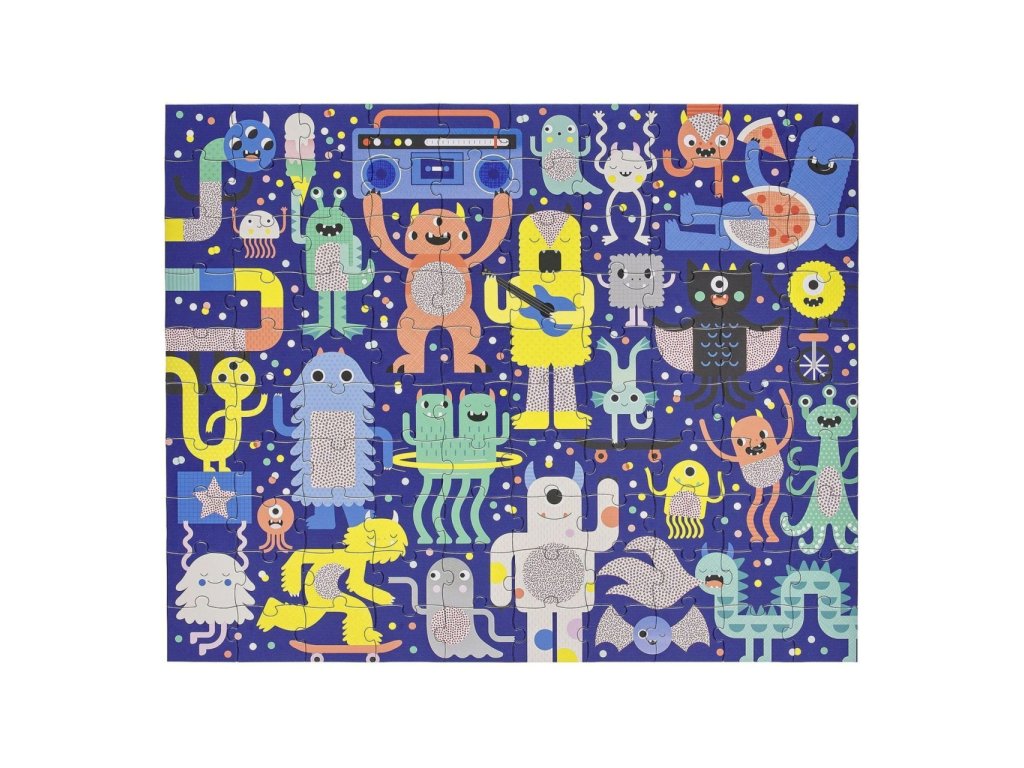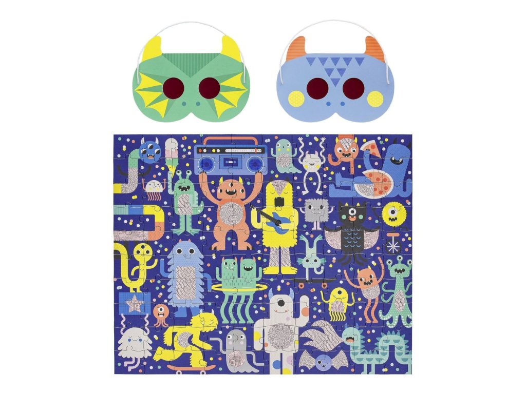 Petit Collage Puzzle příšerky 100 ks s 3D brýlemi