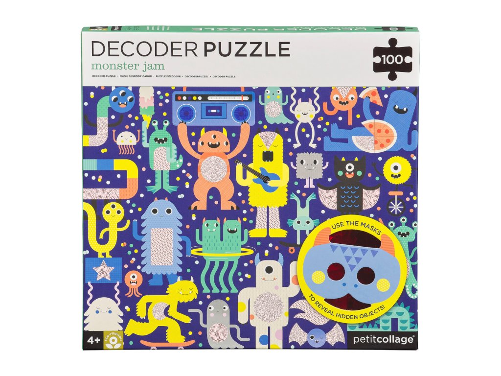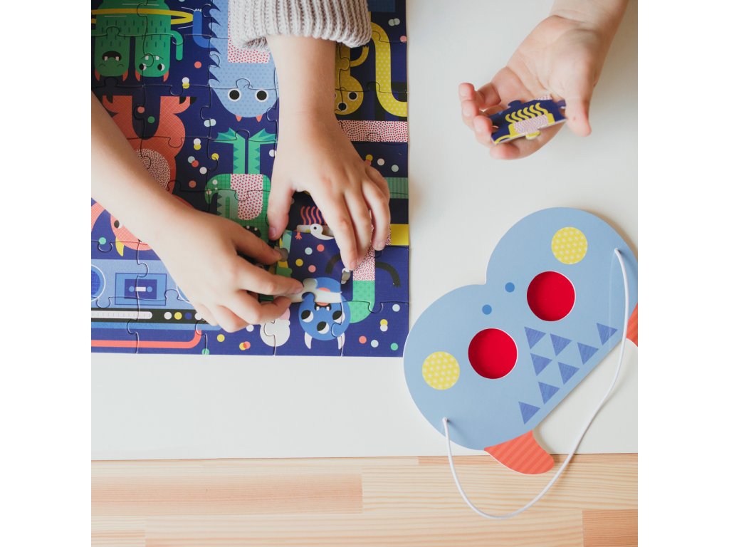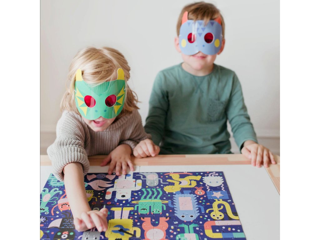 Složte puzzle, a poté pomocí dvou zvířecích 3D brýlí najděte objekty, které se skrývají v rušné scéně. Tyto roztomilé příšerky jsou připraveny slavit na festivalu, ale ztratily pár věcí. Poskládejte puzzle, nasaďte si 3D brýle a pomozte jim najít skryté objekty - 5 sladkostí, 4 objekty s kolečky, 3 pokrývky hlavy, 2 objekty spjaté s hudbou, 1 páchnoucí věc. Hlavní vlastnosti: 2 masky s 3D fóliemi100 dílků puzzlerecyklovaný FSC papírpotištěno netoxickými barvami Značka a certifikát FSC® (Forest Stewardship Council) zaručuje, že dřevo, ze kterého byl produkt vyroben, nebylo vytěženo nelegálně a pochází z lesů obhospodařovaných šetrným či přírodě blízkým způsobem, ve kterém jsou dodržovány přísné environmentální a sociální požadavky. Značka FSC® na výrobku znamená, že svým nákupem pomáháte chránit lesy a podporujete šetrné, odpovědné či přírodě blízké hospodaření, díky kterému jsou naše lesy stabilnější, zdravější, mají přirozenou druhovou skladbu a lépe odolávají negativním následkům klimatických změn.