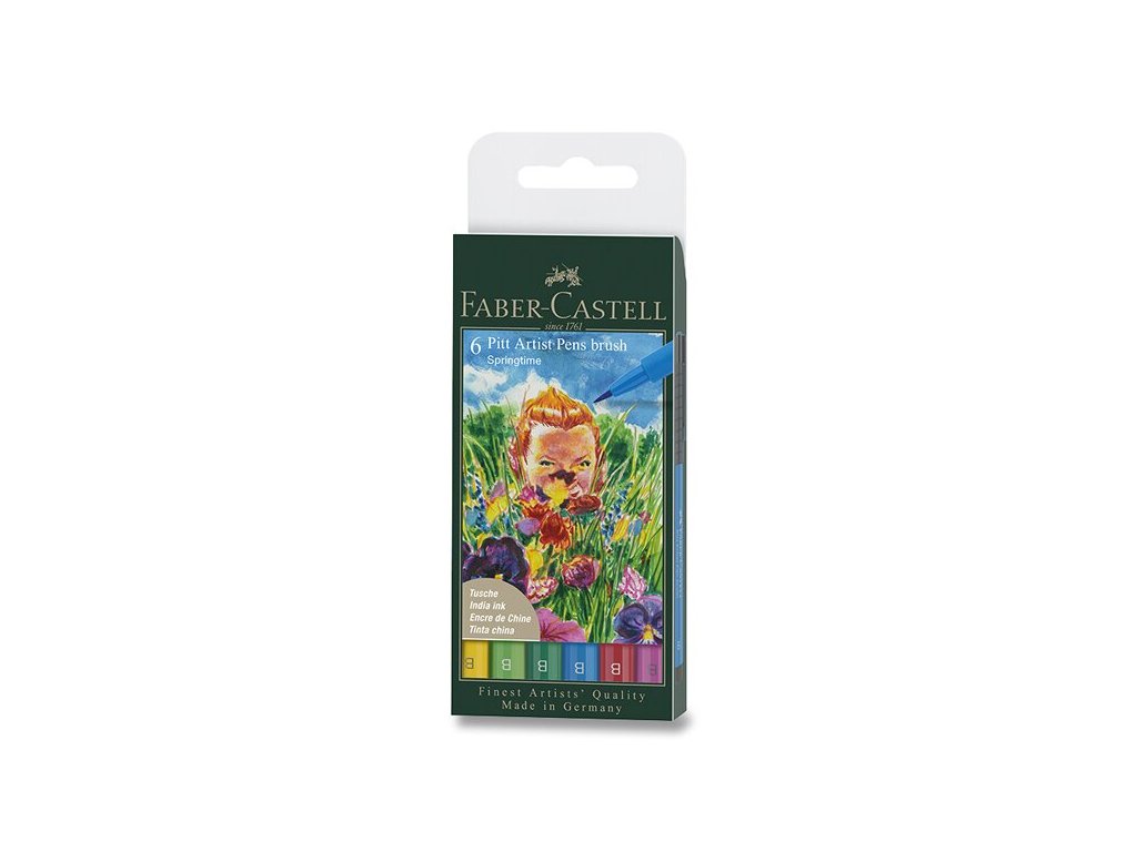 Popisovač Faber-Castell Pitt Artist Pen Brush - 6 ks, hrot B, jarní odstíny