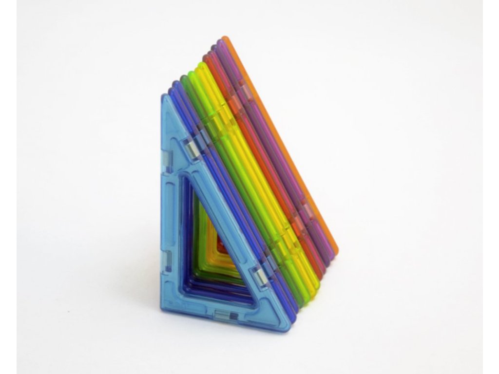 Pravoúhlý trojúhelník patří mezi dílky s 5 spojovacími magnety. Pravoúhlé trojúhelníky patří mezi klasické geometrické tvary a kromě didaktického využití jej lze vsadit např. do štítů střech, na plachty lodí nebo kdekoliv, kde konstruujete šikmou plochou se stoupáním v poměru 1/2.
