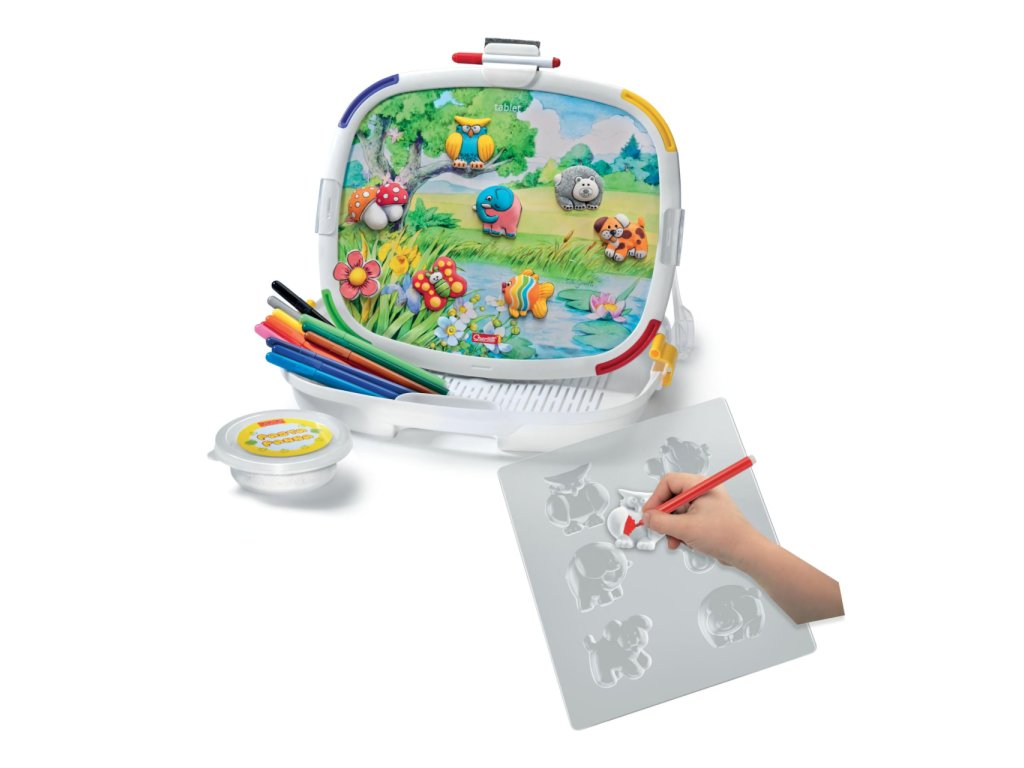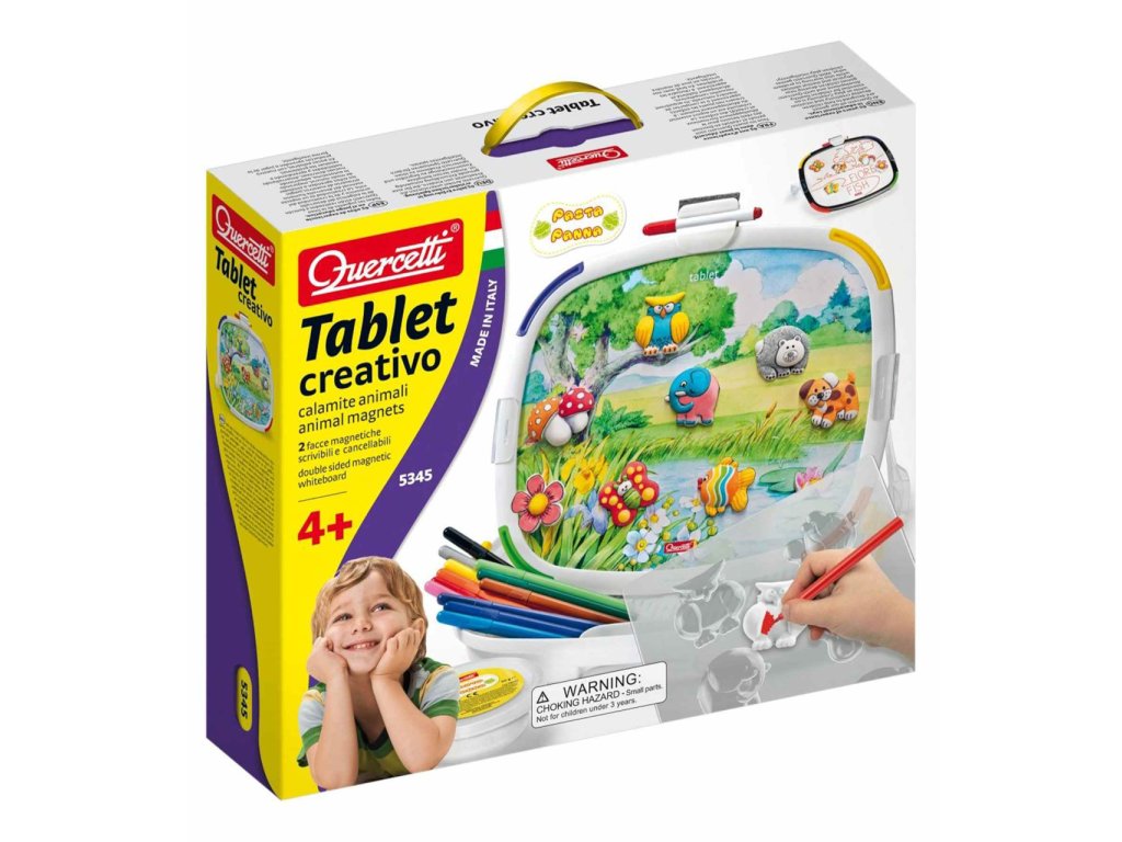 Za pomoci soupravy Tablet Creativo můžete vytvářet úžasné magnetky, které je možné připevňovat nejen na oboustrannou tabulku. Díky kouzelné lehké hmotě Pasta Panna, jenž se nelepí na ruce a skvěle se s ní pracuje, je pro děti snadné vytvářet fantastická zvířátka, jež pak mohou dle svého uvážení pomalovat přiloženými fixy. Stačí zapojit fantazii a čas na hraní může začít! V barevné scenérii se zasněte nad příběhy zvířátek či fixy pomalujte protější tabulku! Hlavní vlastnosti: oboustranné magnetické víko rozvíjí kreativitu a manuální zručnostpro děti od 4 letvyrobeno v Itálii
