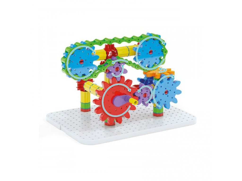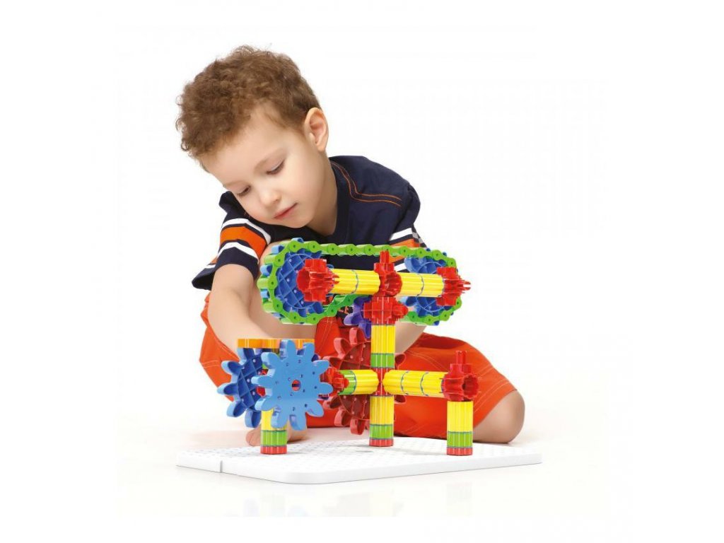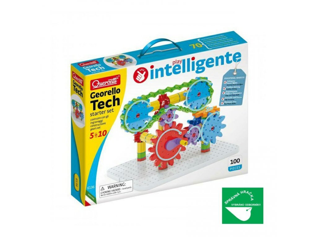 Pevná základní deska umožňuje sestavování vodorovných i svislých převodových soustav jak podle přehledného obrazového návodu, tak na základě vlastních nápadů a fantazie. Děti od 5 do 10 let tak díky této nerozbitné a bezpečné hračce procvičují a rozvíjejí jemnou motoriku, logické a matematické myšlení i schopnost řešit problémy, učí se pracovat s chybou a zábavnou formou se seznamují s principy mechaniky.Oceněno titulem "Správná hračka". Obsah balení: 1 bílá základní deska + 1 klika1 velké ozubené kolo5 středních ozubených kol2 malá ozubená kola23 sloupků + 6 červených patek20 modrých spojek1 řetěz s 25 články8 červených čtyřsměrových spojek9 spojovacích kolíků1 album s obrazovým návodem Všechny stavebnice Georello od značky Quercetti jsou mezi sebou plně kompatibilní. Hlavní vlastnosti: rozvíjí jemnou motoriku, tvořivost, fantazii a kombinační myšleníbalení obsahuje 100 dílkůpro děti od 5 let Označení „Správná hračka“ je udělováno produktům, které cílí na děti předškolního věku a vynikají zejména výchovnými kvalitami, ale i vysokým standardem zpracování, komfortem používání a estetickou úrovní. Záměrem tvůrců ocenění je poskytovat vodítko a oslovovat rodiče i pedagogy, kteří chtějí ovlivňovat směřování nabídky a za prvořadý považují zdravý osobnostní rozvoj dětí. Tím chtějí tvůrci podněcovat k rozšiřování a vývoji nových hodnotných hraček či her. Označení je udělováno od roku 1994 a je společným projektem Sdružení pro hračku a hru, Asociace hračka Unie výtvarných umělců ČR a Asociace předškolní výchovy. Tato sdružení společně s Uměleckoprůmyslovým muzeem v Praze a Městským muzeem v Kamenici nad Lipou udělují ocenění při příležitosti festivalu Hračkobraní konajícího se každoročně od roku 2006 na zámku v Kamenici nad Lipou, kde můžete mimo jiné zhlédnout stálou expozici všech oceněných hraček.