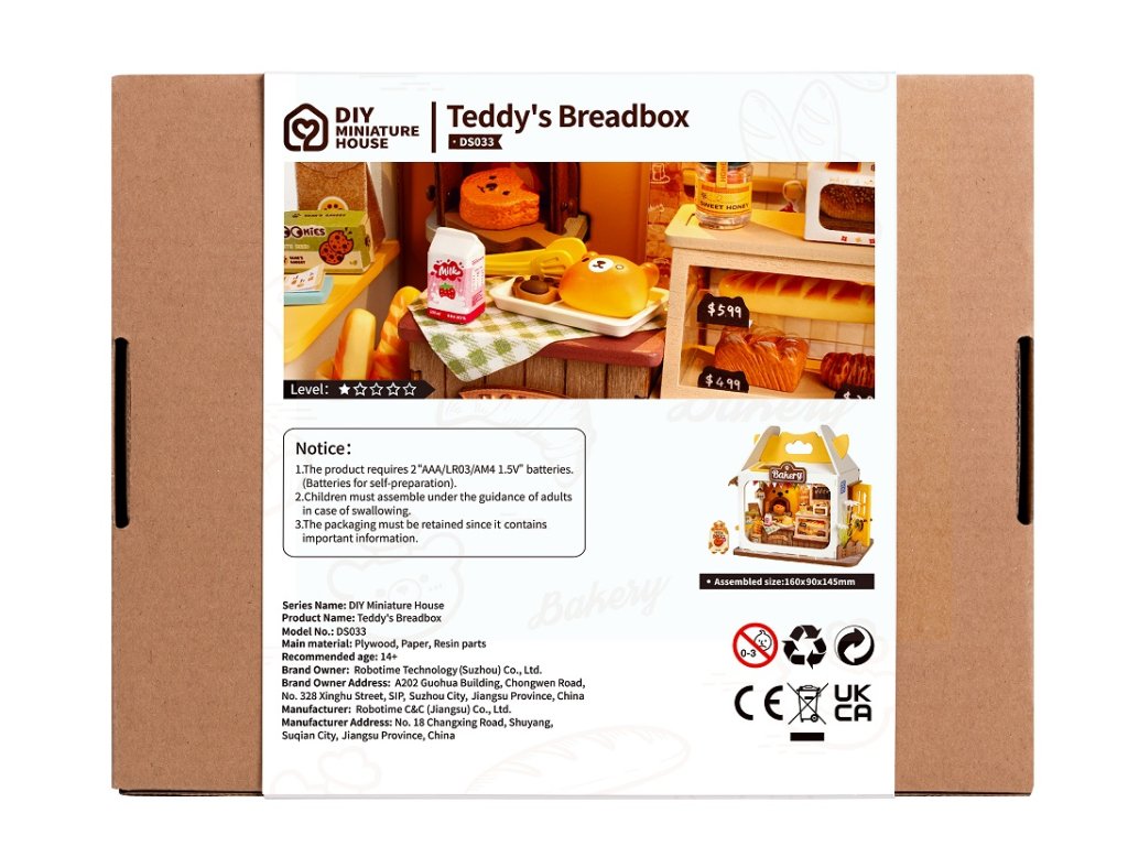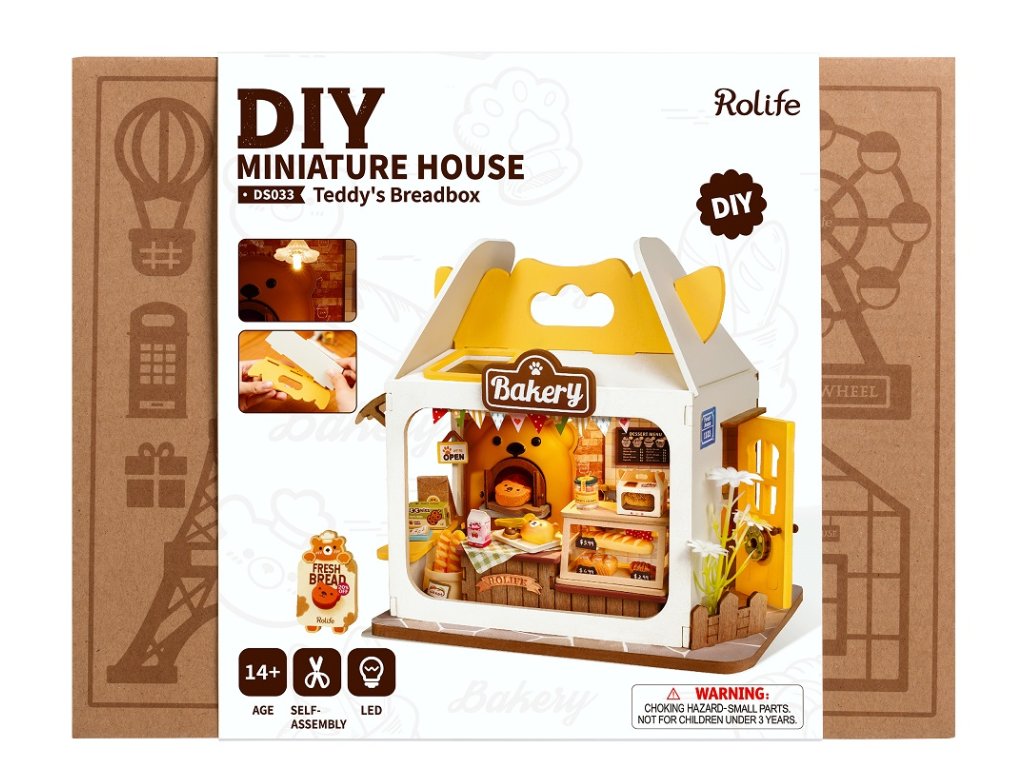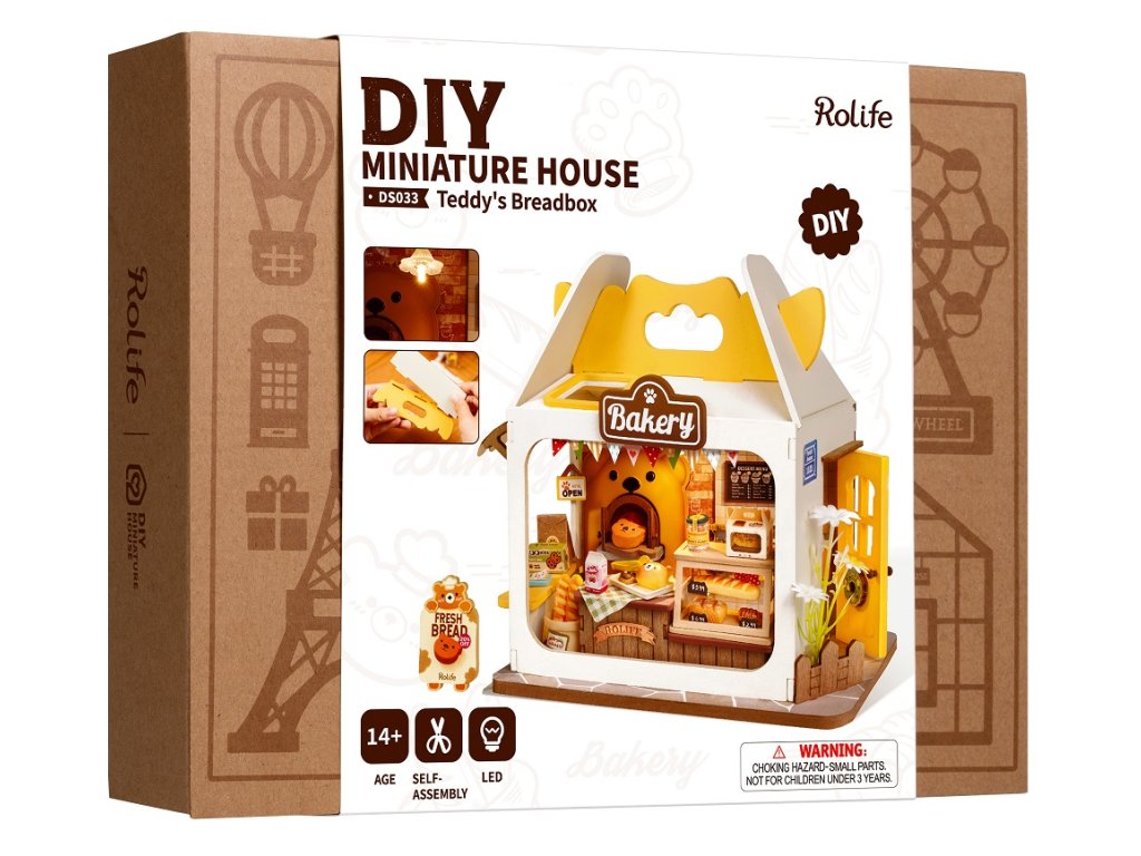 Medvídek nedávno otevřel na rušné ulici pekárnu - nyní každé ráno stojí před výlohou fronty zvířecích kamarádů a čekají až se dostanou k lahodným chlebům a křupavoučkým bagetkám na jenž použil svůj vlastní tajný recept! Pomůžete Méďovi zasytit hladové zákazníky a stát se nejlepším pekařem v okolí? Tak tedy hurá, jdeme péct! Objevte svět detailních miniatur Robotime přicházejících v podobě jedinečných výtvarných stavebnic. Při jejich sestavování strávíte příjemné chvíle a výsledkem můžete zkrášlit zákoutí svého pokoje. Každá ze stavebnic je dodávána v rozloženém stavu. V balení spolu se všemi součástmi a podrobným návodem naleznete lepidlo i jiné nástroje. Zpravidla si při sestavování a úpravách ale vystačíte s obyčejnými nůžkami, které doma jistě vždy najdete. Výtvarné sady jsou rozděleny hned do několika různých řad a tvoří výjimečně pestrou nabídku. Je Vám bližší obytný prostor, podnik, nebo něco jiného? Snadno si vyberete! Hlavní vlastnosti: stavebnice včetně příslušenství k sestaveníodhadovaná doba sestavení 90 min.LED osvětlení (baterie 2xAAA/LR03 nejsou součástí balení)vyžaduje vlastní nůžky a může obnášet i použití dalšího drobného nářadí