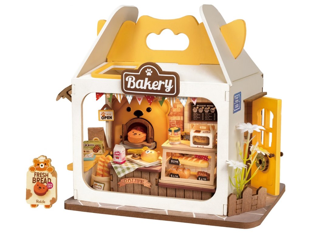 RoboTime 3D dřevěná skládačka Miniatura domečku Medvídkovo pekařství