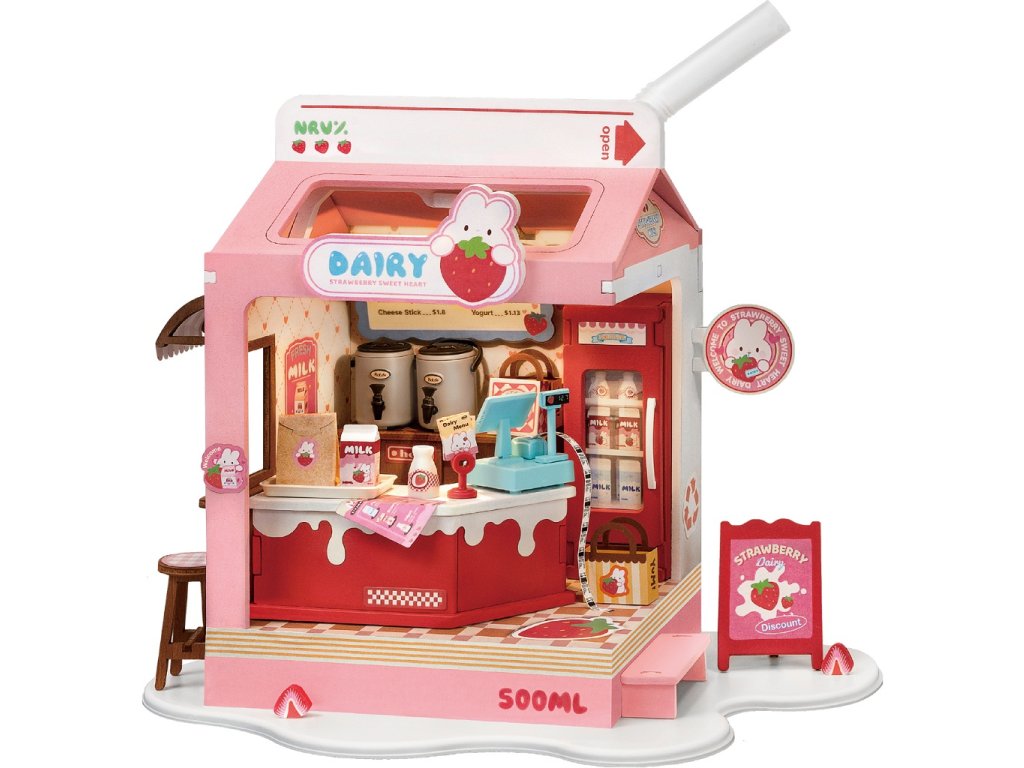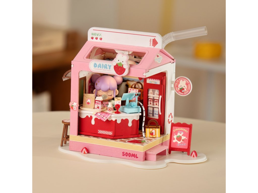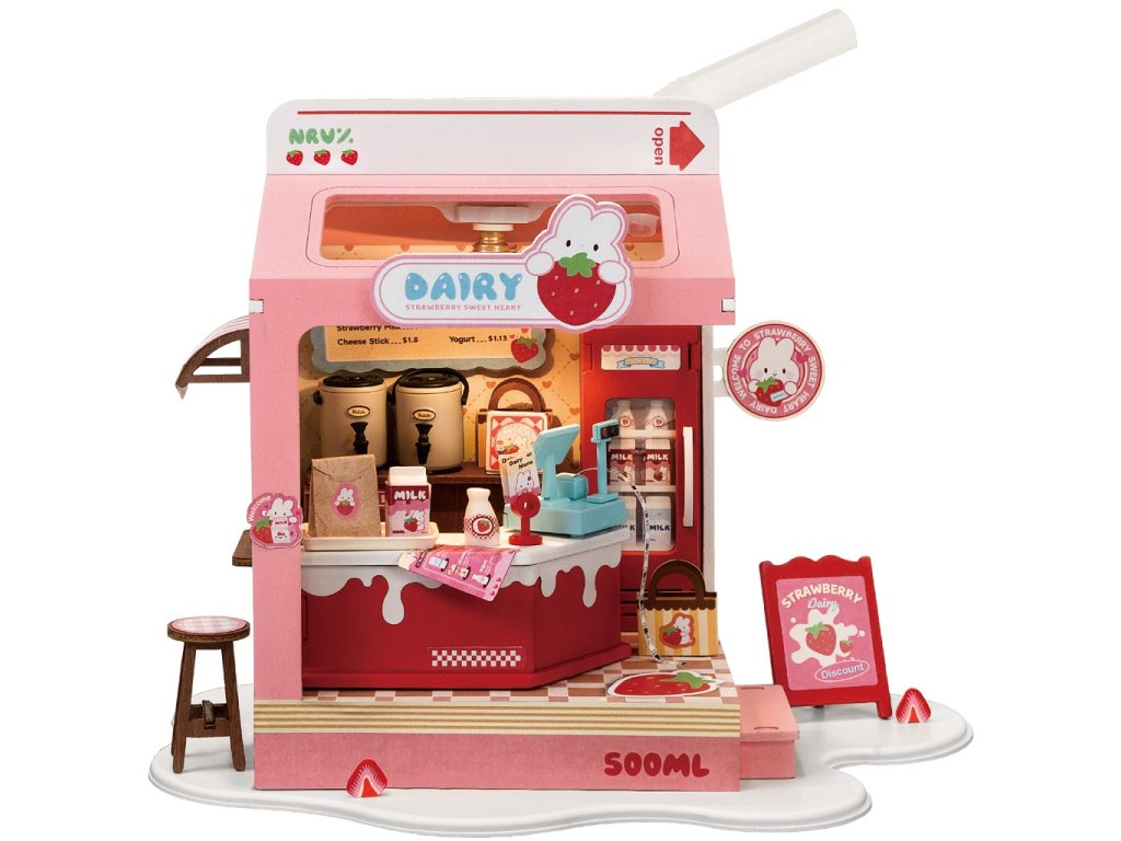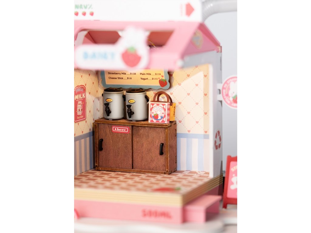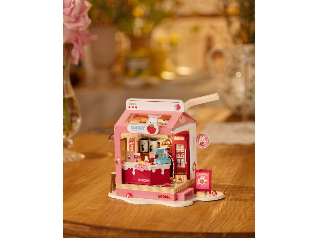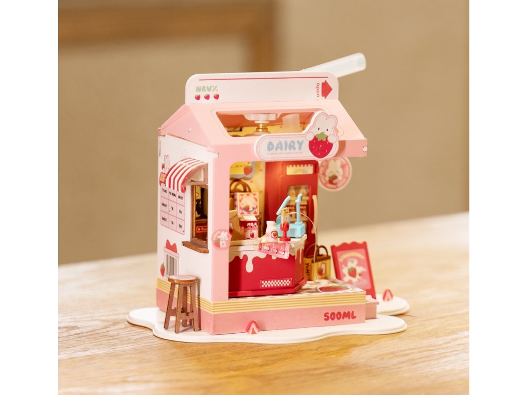 RoboTime 3D dřevěná skládačka Miniatura domečku Mléčný bar Strawberry