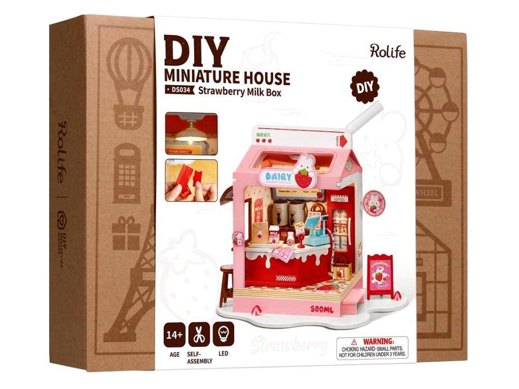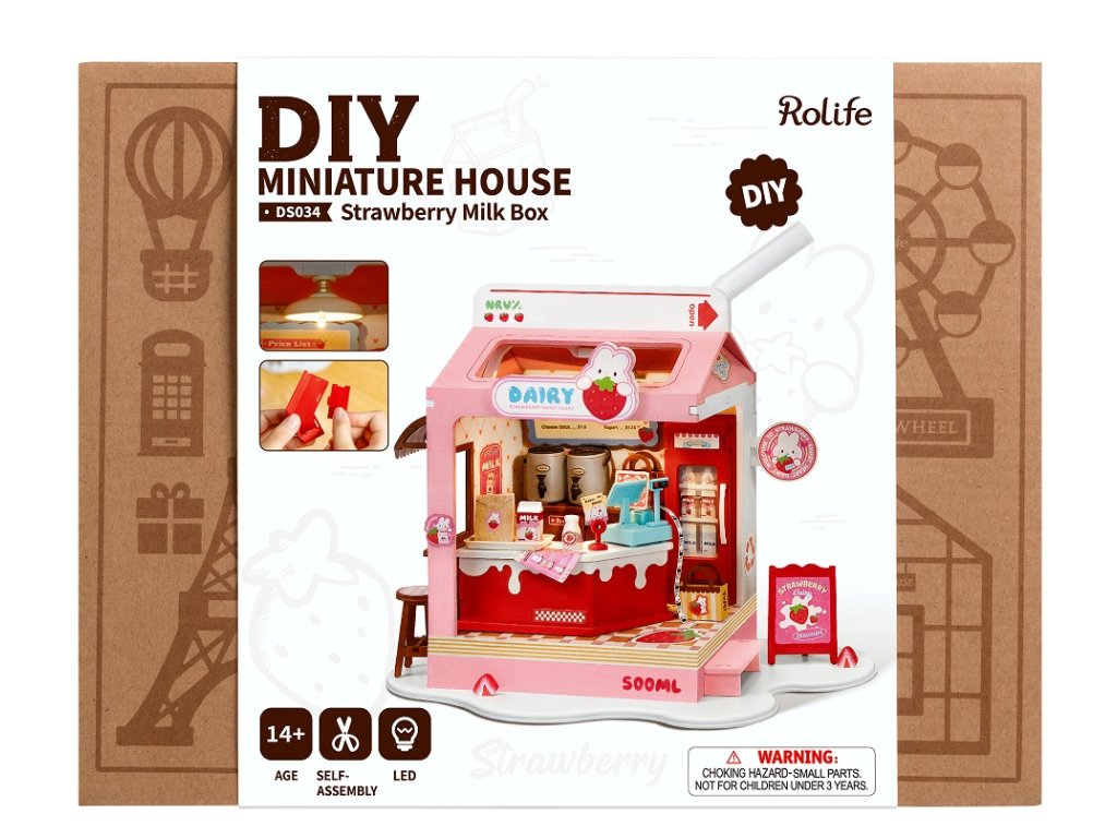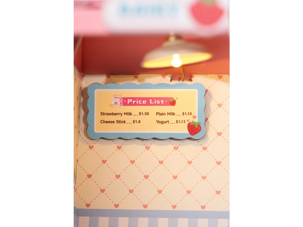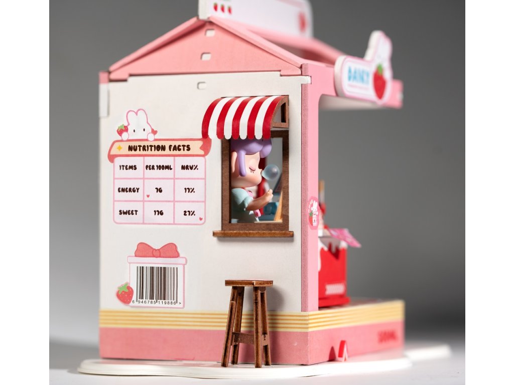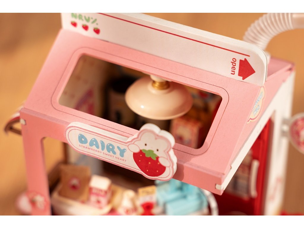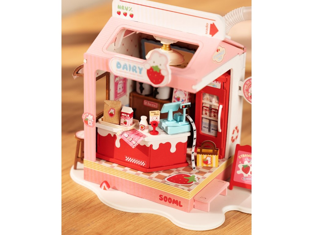 RoboTime 3D dřevěná skládačka Miniatura domečku Mléčný bar Strawberry