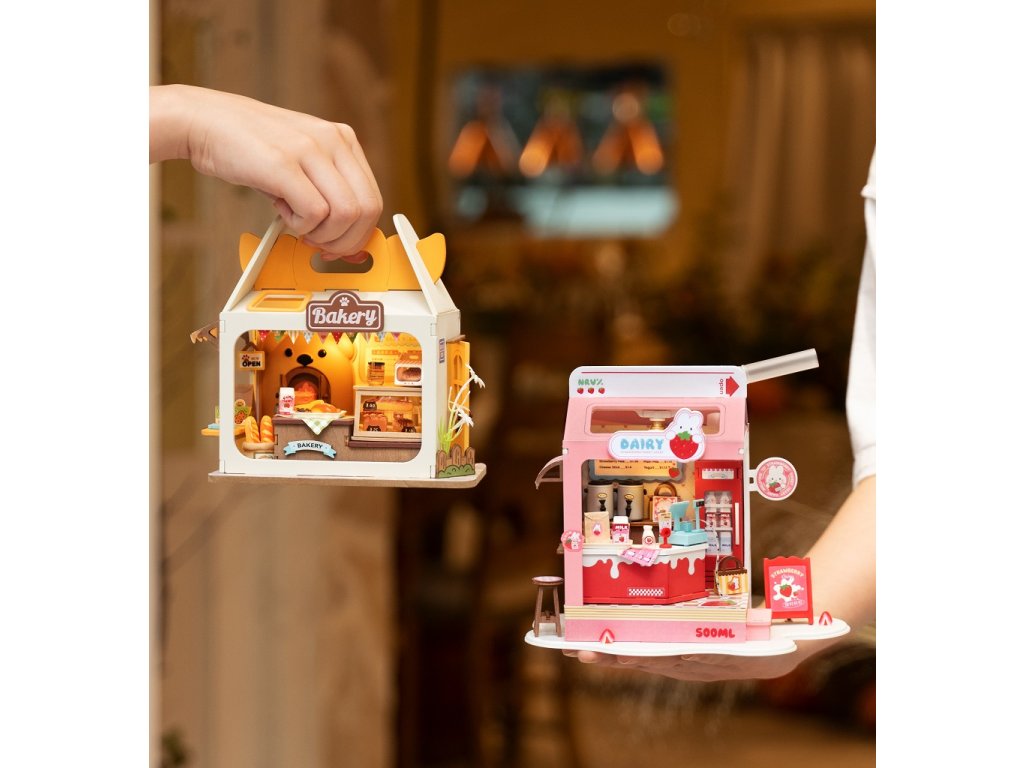 Králíček nedávno otevřel na rušné ulici mléčný bar - nyní každé ráno stojí před výlohou fronty zvířecích kamarádů a čekají až se dostanou k lahodným nápojům z mléka a jahod! Pomůžete králíčkovi zasytit hladové zákazníky a stát se nejlepším podnikatelem v okolí? Tak tedy hurá do baru! Objevte svět detailních miniatur Robotime přicházejících v podobě jedinečných výtvarných stavebnic. Při jejich sestavování strávíte příjemné chvíle a výsledkem můžete zkrášlit zákoutí svého pokoje. Každá ze stavebnic je dodávána v rozloženém stavu. V balení spolu se všemi součástmi a podrobným návodem naleznete lepidlo i jiné nástroje. Zpravidla si při sestavování a úpravách ale vystačíte s obyčejnými nůžkami, které doma jistě vždy najdete. Výtvarné sady jsou rozděleny hned do několika různých řad a tvoří výjimečně pestrou nabídku. Je Vám bližší obytný prostor, podnik, nebo něco jiného? Snadno si vyberete! Hlavní vlastnosti: stavebnice včetně příslušenství k sestaveníodhadovaná doba sestavení 90 min.LED osvětlení (baterie 2xAAA/LR03 nejsou součástí balení)vyžaduje vlastní nůžky a může obnášet i použití dalšího drobného nářadí