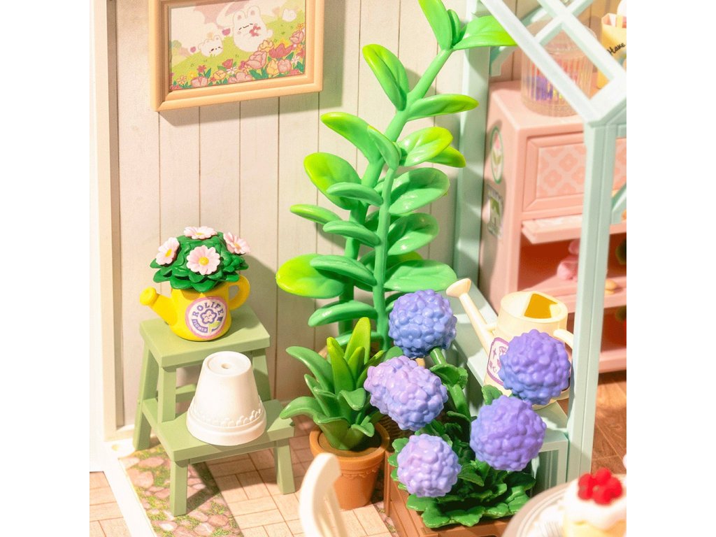 RoboTime 3D dřevěná skládačka Miniatura domečku Posezení s čajem v kvetoucí zahradě