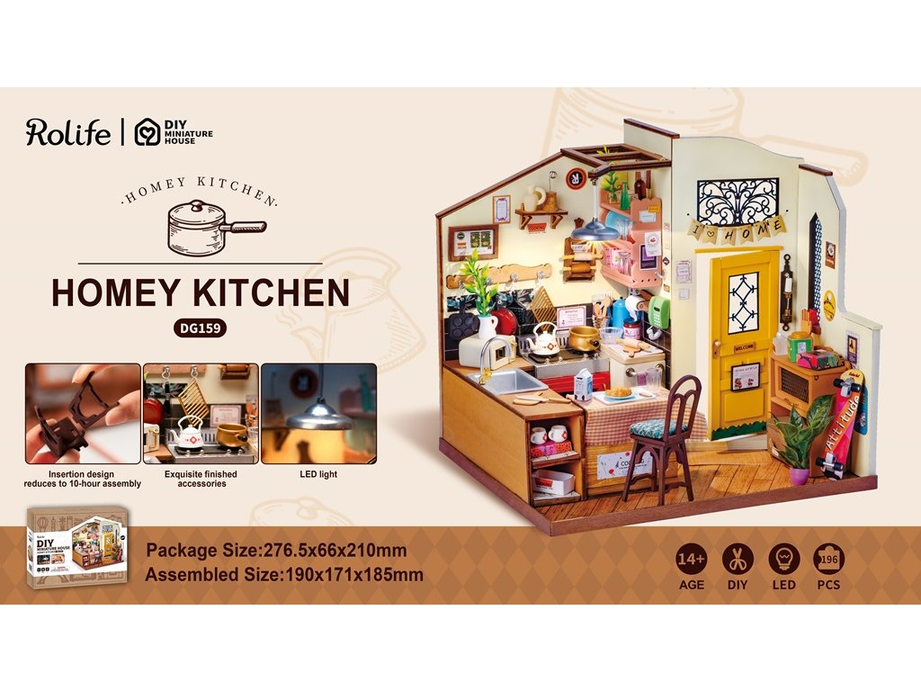 Představte si, jak se vrátíte do doby dětství, kdy jste prožívali příběhy s vašimi hračkami, ale tentokrát s dotekem dospělosti a elegance. Představte si svět, kde vaše kreativita a řemeslné dovednosti mohou dosáhnout nových výšek. Představujeme vám miniaturní model kuchyně "Útulná kuchyně", který přinese radost a zábavu pro děti i dospělé. Tento model kuchyně je tak útulný a teplý, jak byste očekávali od vlastní domácnosti. S 196 díly, které musíte sestavit, Vás Útulná kuchyně zaujme na celých 10 hodin montáže. Detektivní práci necháme na Vás - jaký hostitel zde podle vás žije? Mohli by to být schopní pekaři nebo mistři vaření? Nebo možná milovníci čaje, kteří si užívají klidné odpoledne v teple svého domova? Model je přizpůsobivý a dovoluje vám vytvořit vlastní verzi životního stylu, který jste vždy chtěli. Je vyroben s ohledem na detail, s krásnými hrnci a pánvemi, designem klasického uspořádání a okouzlujícím osvětlením, které přidává atmosféru. Zkuste si představit, jaké by to bylo poslouchat zvuk cinkajících šálků a misek, šustění nakrájené zeleniny a cítit vůni přísad, které plavou po vložení do pánve... Všechny tyto zážitky můžete zažít. Začněte svou cestu kreativity a zábavy. Užijte si šťastné chvíle vaření a dělení se o radost s rodinou a přáteli. Na konci dne, když se otočíte a podíváte se na své dílo, budete hrdí na to, co jste dokázali. Upozornění: Není vhodné pro děti do 3 let, obsahuje malé součásti - hrozí nebezpečí udušení. Balící materiál není hračka. Baterie 2 kusy (AAA/LR03/AM4 1,5V) nejsou součástí balení. Hlavní vlastnosti: 196 precizně vyřezaných dílůmateriál dřevodoba sestavení: cca 10 hodinvyžaduje 2 kusy baterií (2 kusy AAA/LR03/AM4 1,5V) - nejsou součástí balenívhodné od 14 let