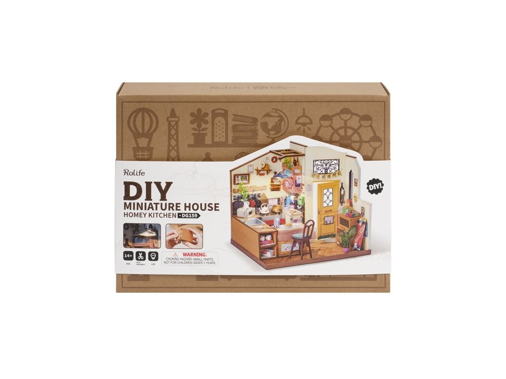 RoboTime 3D dřevěná skládačka Miniatura domečku Útulná kuchyně