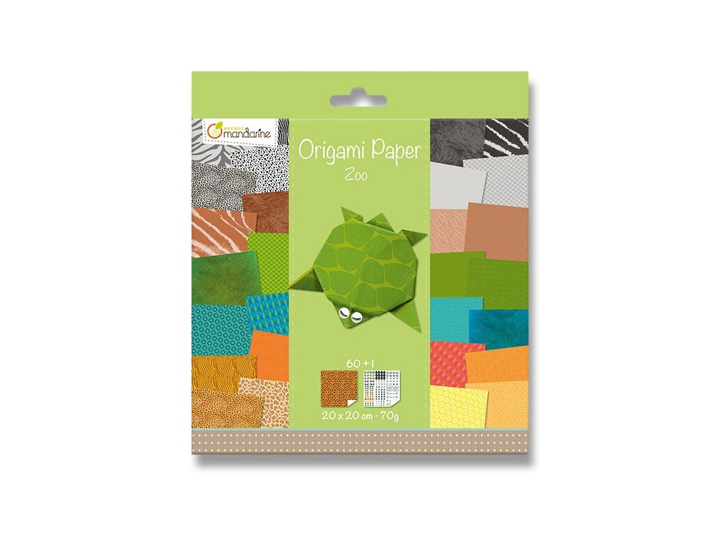 Oboustranně potištěné papíry Avenue Mandarine pro skládání Origami s motivy zoo. Balení obsahuje 60 listů a speciální arch se samolepkami očí různých tvarů, barev a výrazů. Gramáž 70 g.