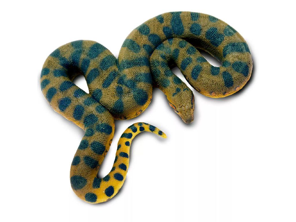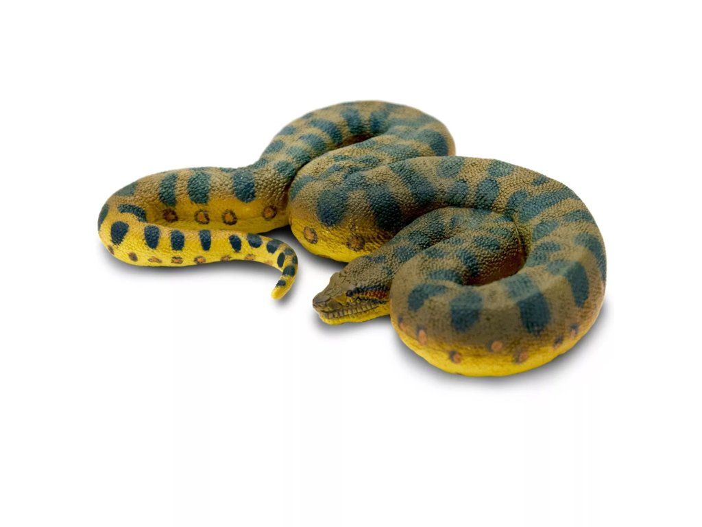 Figurka Anakondy zelené, nejtěžšího známého hada na světě, jež může vážit hodně přes 90 kg. Tento jihoamerický konstriktor může také dorůst přes 17 stop na délku, což z něj činí druhý nejdelší žijící druh hada, hned za krajtou síťovanou v Asii.