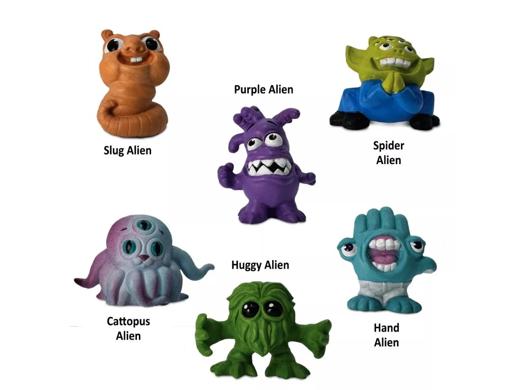 Designerská Tuba - Vetřelci obsahuje celkem 6 jedinečných figurek mimozemšťanů, pocházejících z jiného světa: