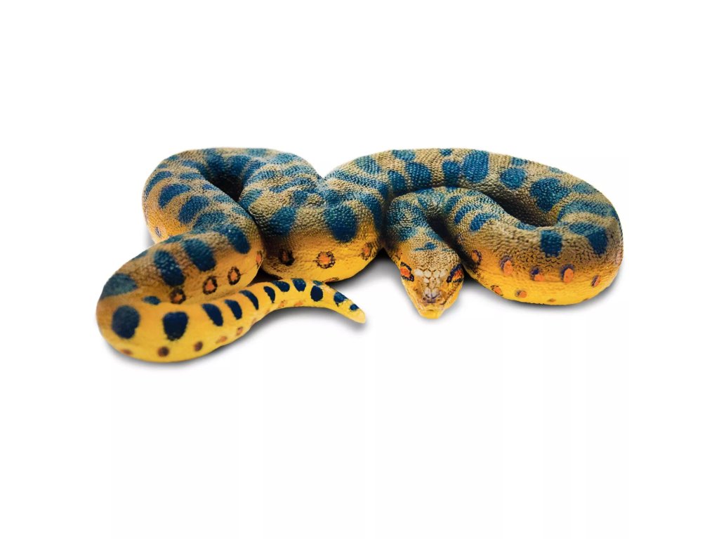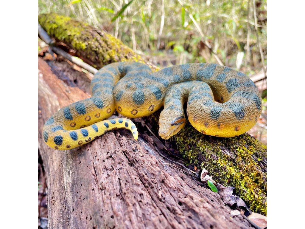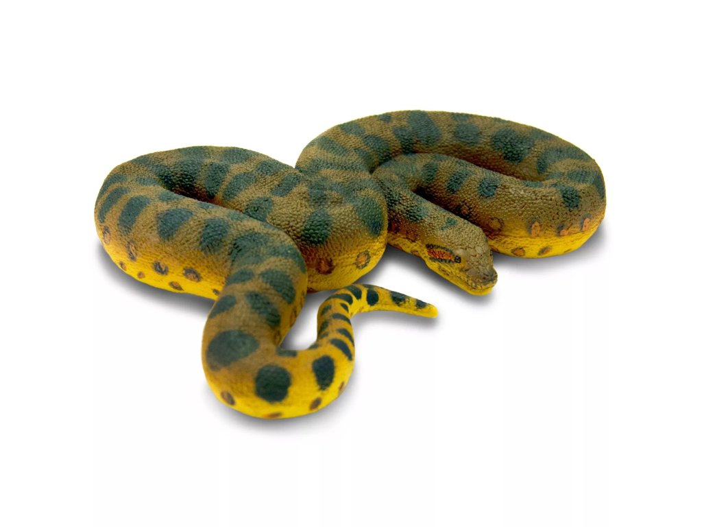 Figurka Anakondy zelené, nejtěžšího známého hada na světě, jež může vážit hodně přes 90 kg. Tento jihoamerický konstriktor může také dorůst přes 17 stop na délku, což z něj činí druhý nejdelší žijící druh hada, hned za krajtou síťovanou v Asii.