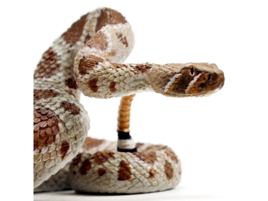 Figurka chřestýše západního, jedovatého zmijovatého hada, vyskytujícího se ve Spojených státech Amerických a v Mexiku, který ve vypjatých situacích chrastí chřestítkem. Délka dospělého jedince se pohybuje kolem 2 metrů.