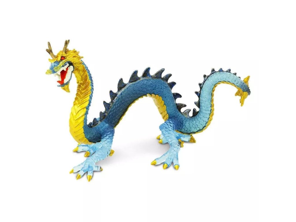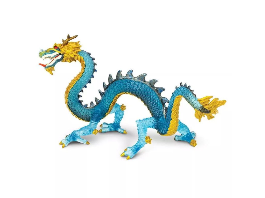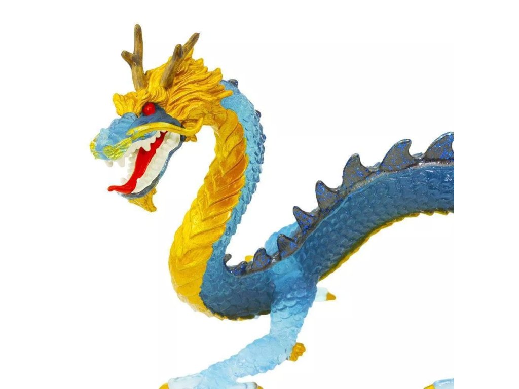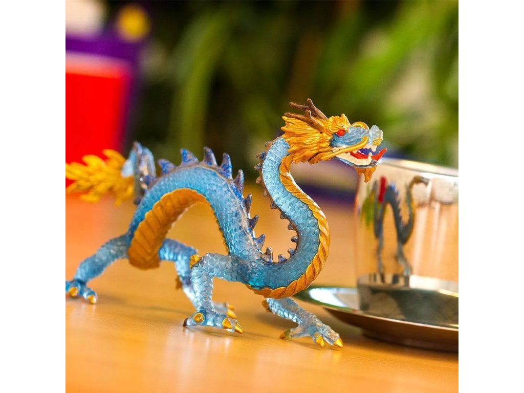 Figurka draka modrého krystalu, elegantního draka, jež pochází ze starověké čínské linie, dračí rodiny bez křídel, s hadími těly a úzkými čenichy. Zatímco jsou někteří draci zlověstní, většina východních draků přináší štěstí.