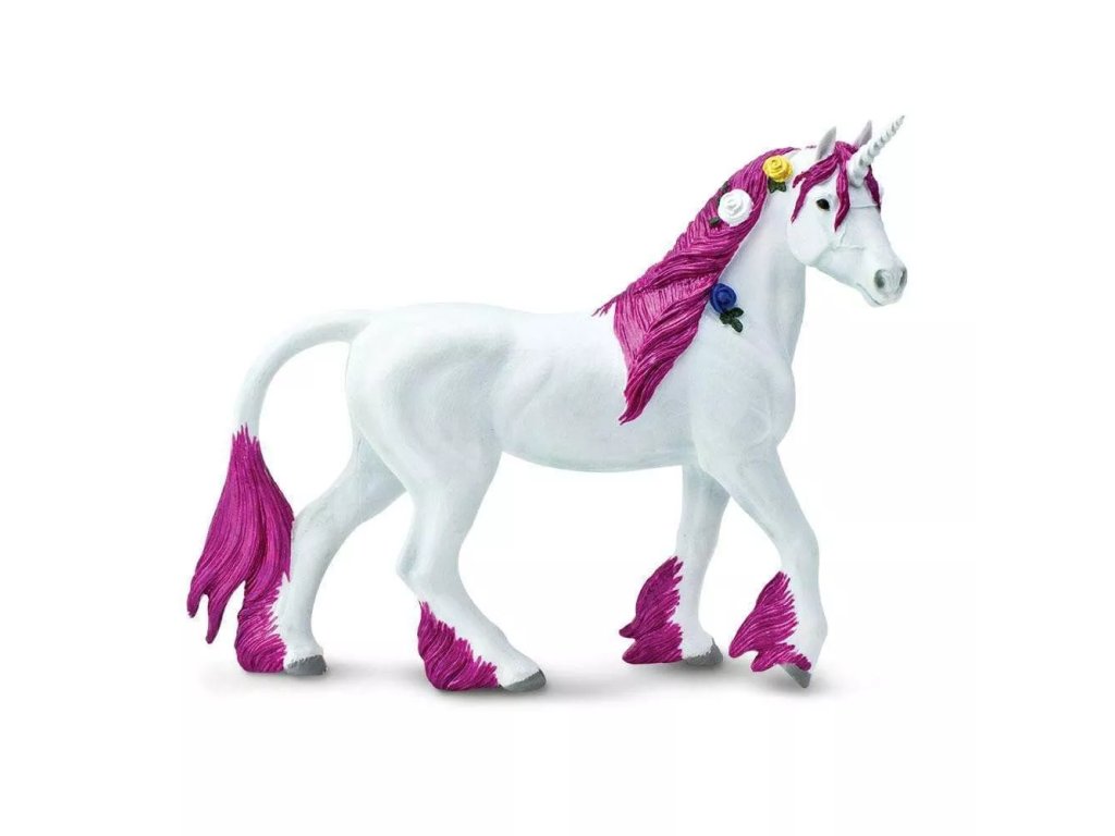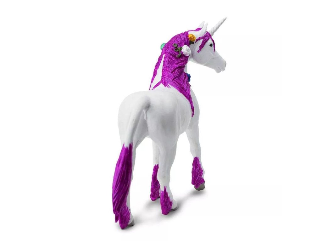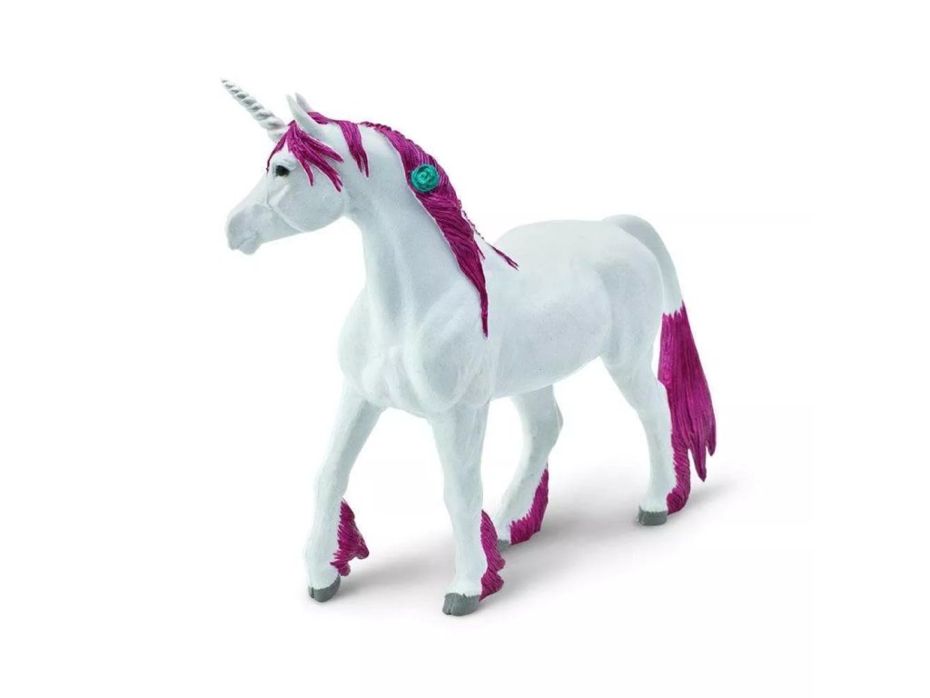 Figurka Jednorožce růžového, krásného bílého tvora s fialovými detaily. Všichni jednorožci jsou tichá stvoření, ale růžový jednorožec představuje temperamentní větev rodiny. Jejich zářivě zbarvené hřívy se předávaly z generace na generaci spolu s jejich touhou po cestách a dobrodružstvích.