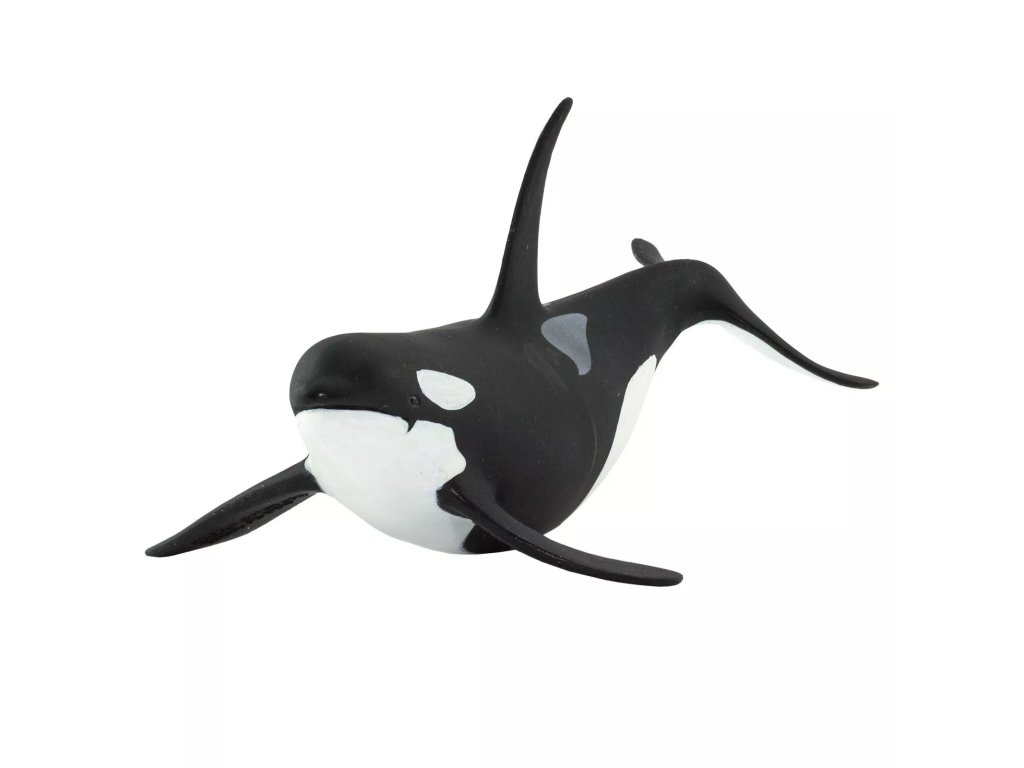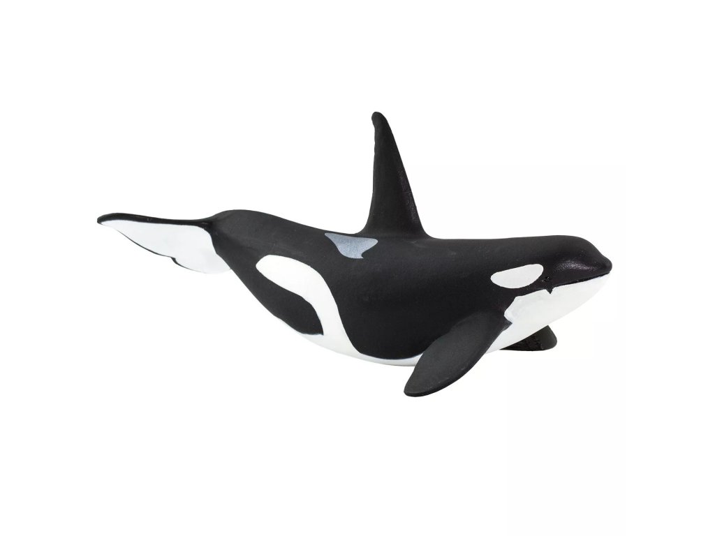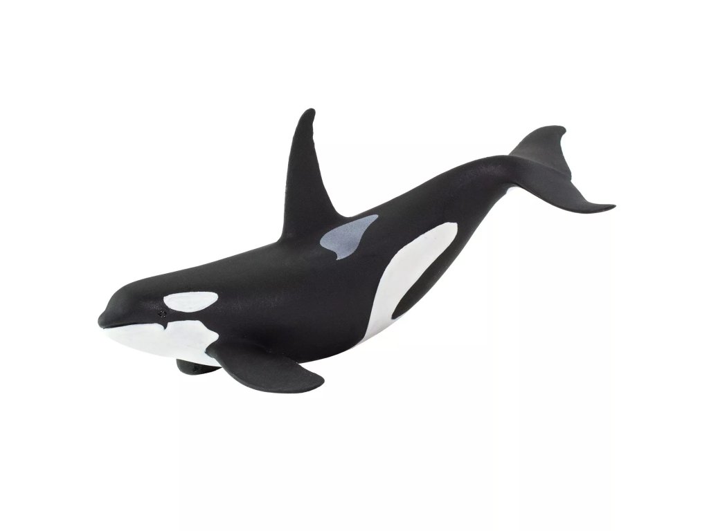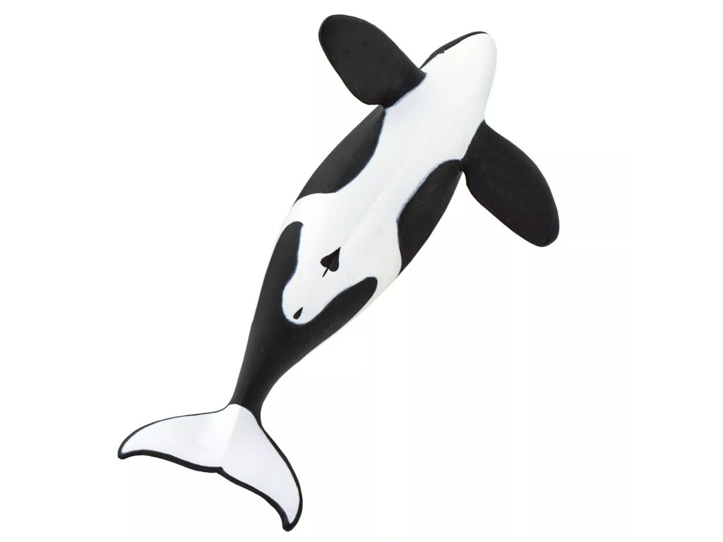 Figurka kosatky, největšího člena rodiny delfínů, který se vyskytuje ve všech světových oceánech.