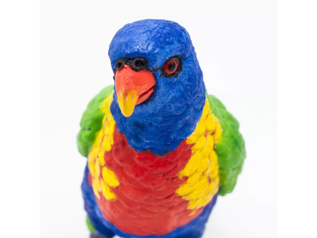 Figurka Loriho, velmi výrazného ptáka, na jehož opeření nalezneme téměř všechny barvy duhy. Dorůstá 25 – 30 cm a v rozpětí křídel dosahuje zhruba 17 cm. Žije v párech, které se občas shlukují do hejn. Většinou obývá tropické deštné pralesy, narazit na něj lze i v otevřené krajině, v parcích a na zahradách ve městech.