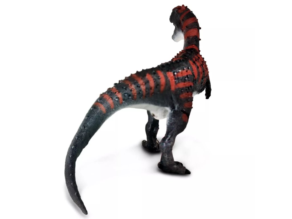 Figurka Majungasaura, abelisauridního dinosaura, příbuzného Carnotaurovi. Na hlavě má jeden roh a stejně jako jeho příbuzný měl velmi hlubokou, tupou lebku a drobné, dozadu zahnuté paže. Tento masožravý dinosaurus byl objeven na ostrově Madagaskar.
