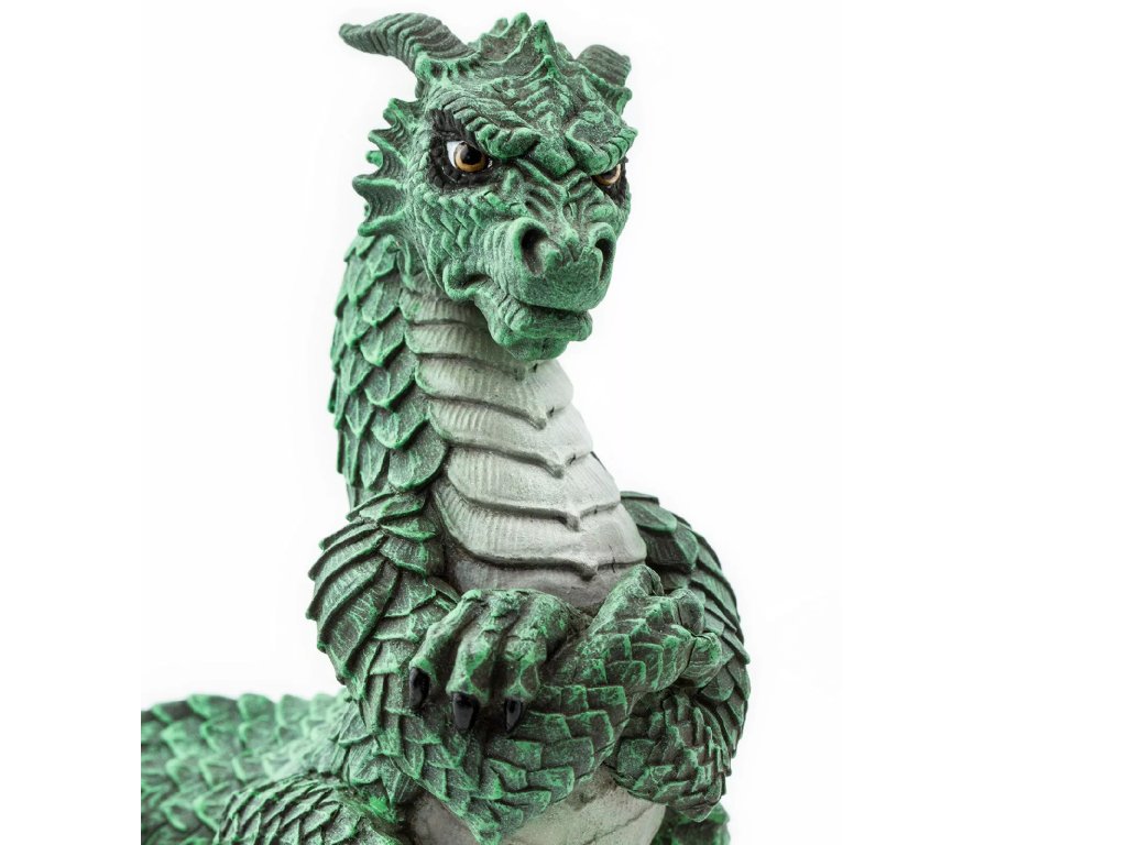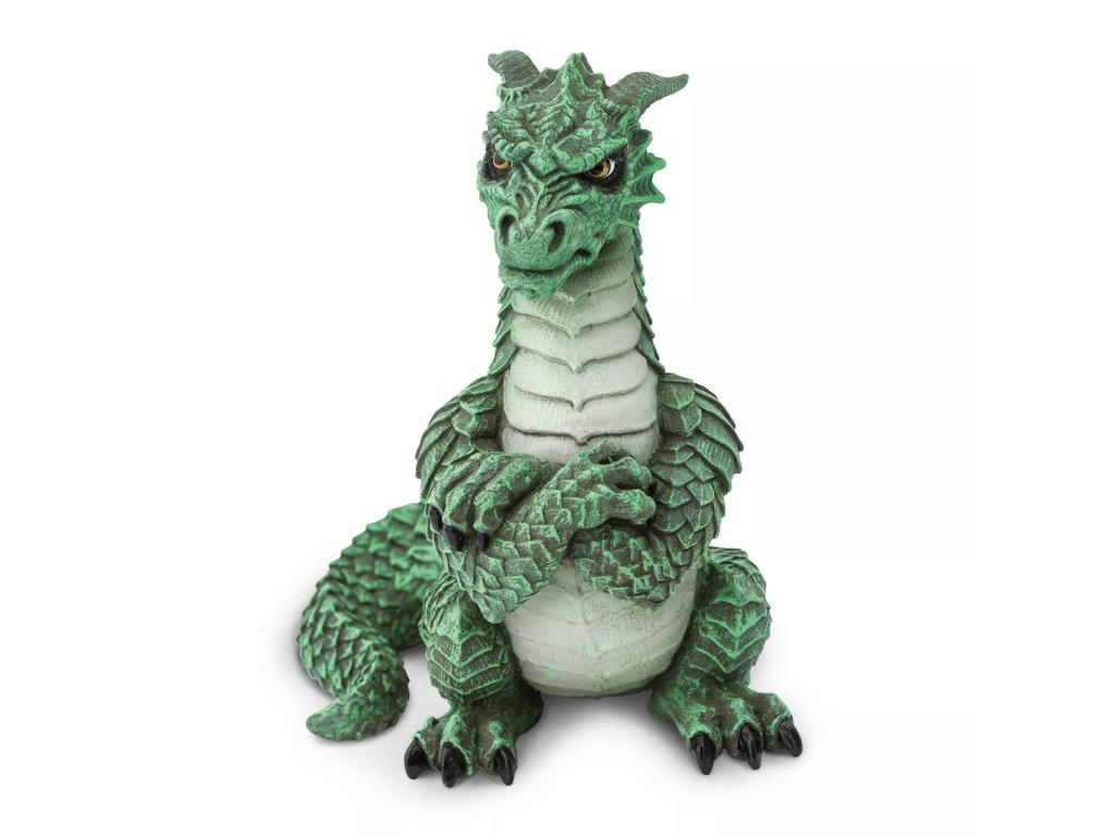 Figurka Mrzutého draka, známého svým věčně kyselým chováním. Ačkoli by se jeho sklopený výraz a šklebící se rty daly zaměnit za hněv, tento drak je ve skutečnosti neškodný.