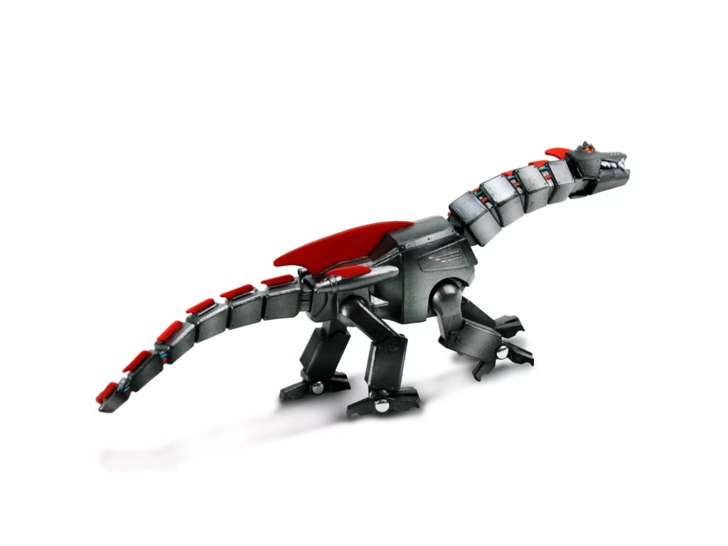 Figurka robotického draka, futuristické postavičky, která vám ukáže, že draci zůstávají silní i v dobách, kdy věda předbíhá fantazii. Tělo má vyrobené z hranatého brnění, které zakrývá skrytou kostru kabelů a drátů, které lze vidět pouze mezi deskami. S kovově stříbrnou barvou, červenýma očima a ploutvemi působí Robot Dragon děsivě. Tato hračka je také kloubová a má pohyblivou čelist, ramena, boky, krk, ocas a prsty!