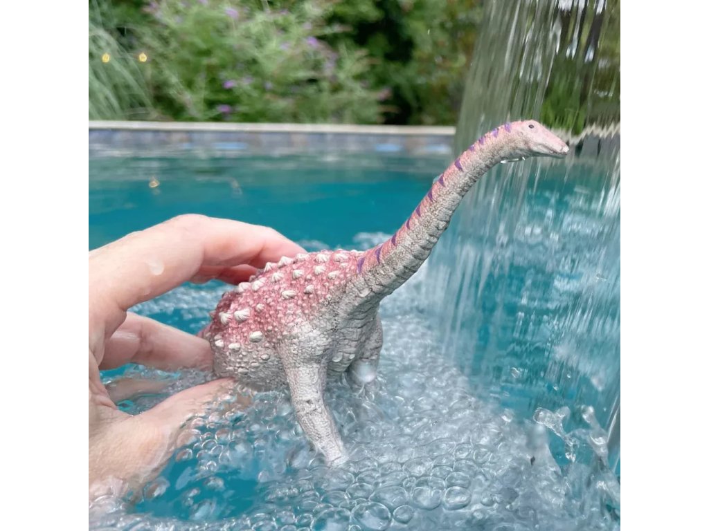 Figurka Saltasaura, jehož tělo bylo pokryto kostnatými osteodermy, které tvořily určitý typ ochranného brnění. Tento docela velký dinosaurus, měřil téměř 30 stop.