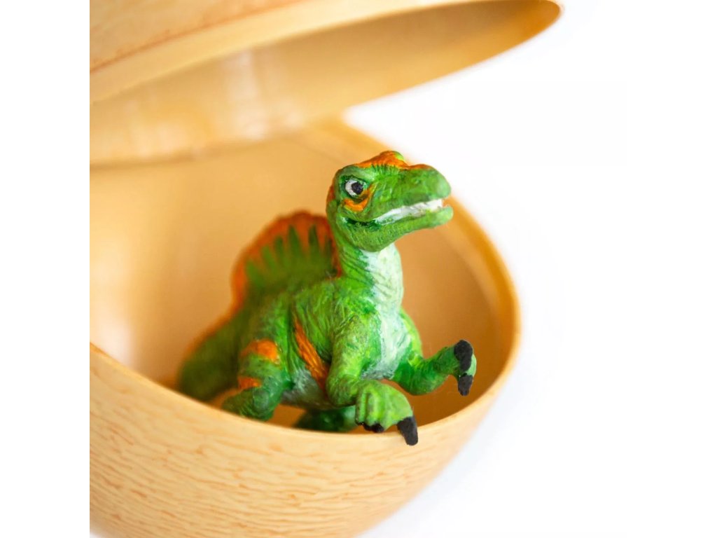Figurka Mláděte Spinosaura s vejcem. Spinosaurus byl děsivý rybožravý dravec s čenichem podobným krokodýlovi, tato figurka rozhodně není nikterak děsivá, ale naopak rozkošná. Pomozte tomuto malému Spinosaurovi vylíhnout se z jeho vajíčka a vydejte se spolu s ním vstříc dobrodružství!