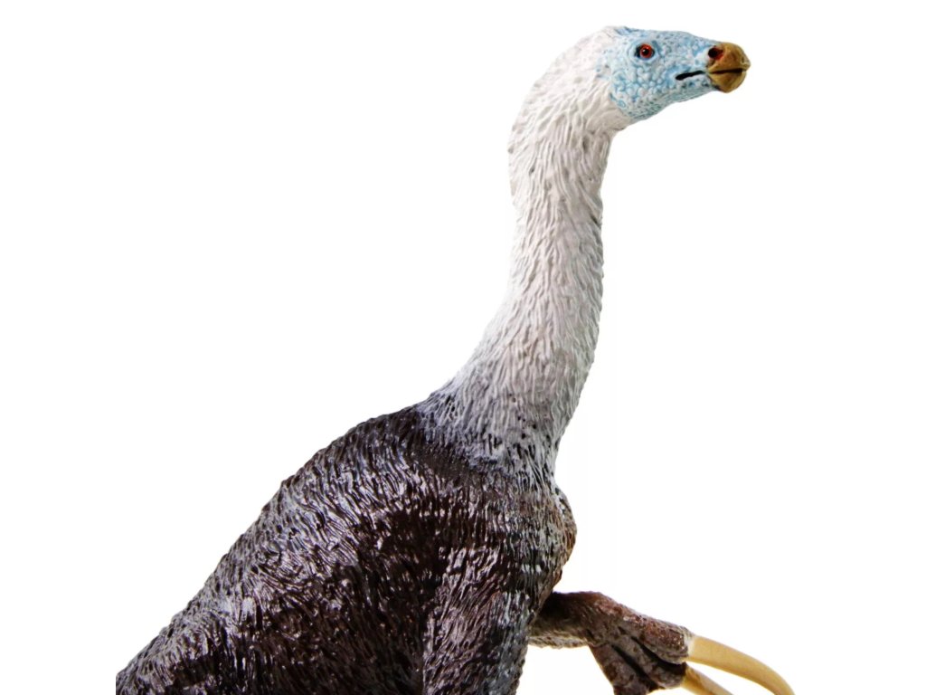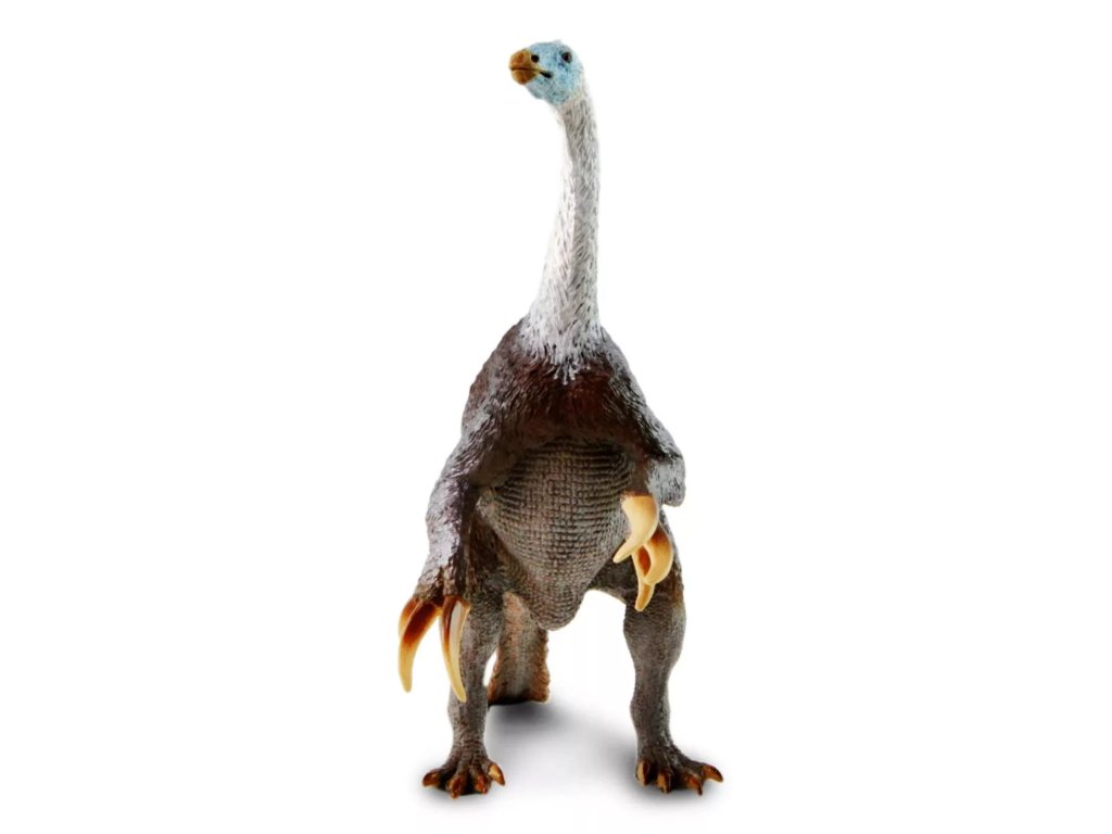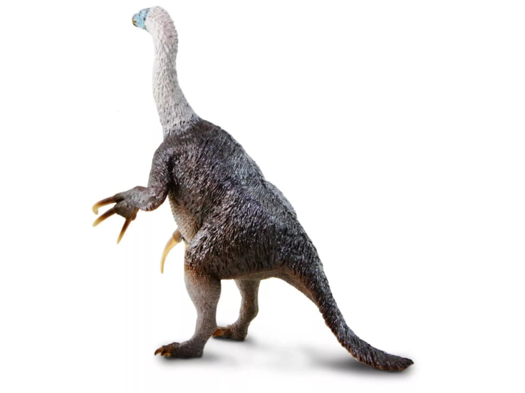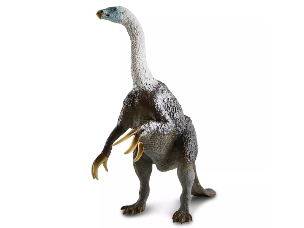 Figurka Therizinosaura, jedinečně vyhlížejícího dinosaura s dlouhým krkem, statným tělem a především - masivně přerostlými drápy na předních končetinách! Zatímco se původně myslelo, že se používají k obraně nebo ke kopání, vědci si nyní myslí, že drápy byly příliš křehké na to, aby je bylo možné použít k něčemu jinému než k vystavování.
