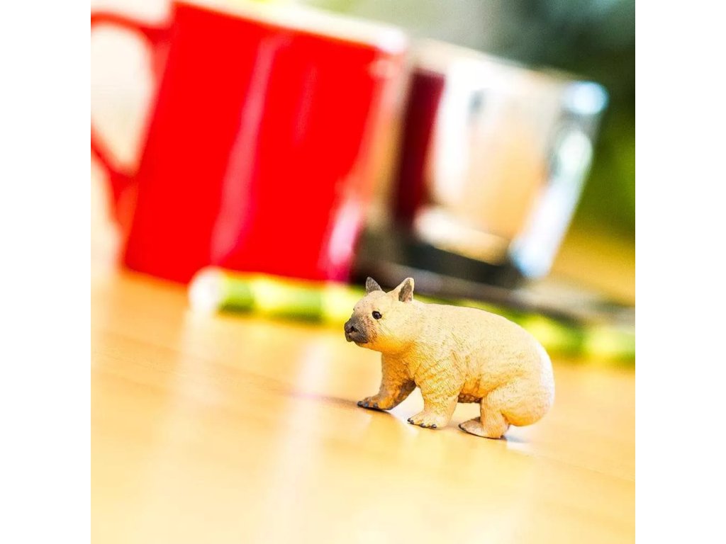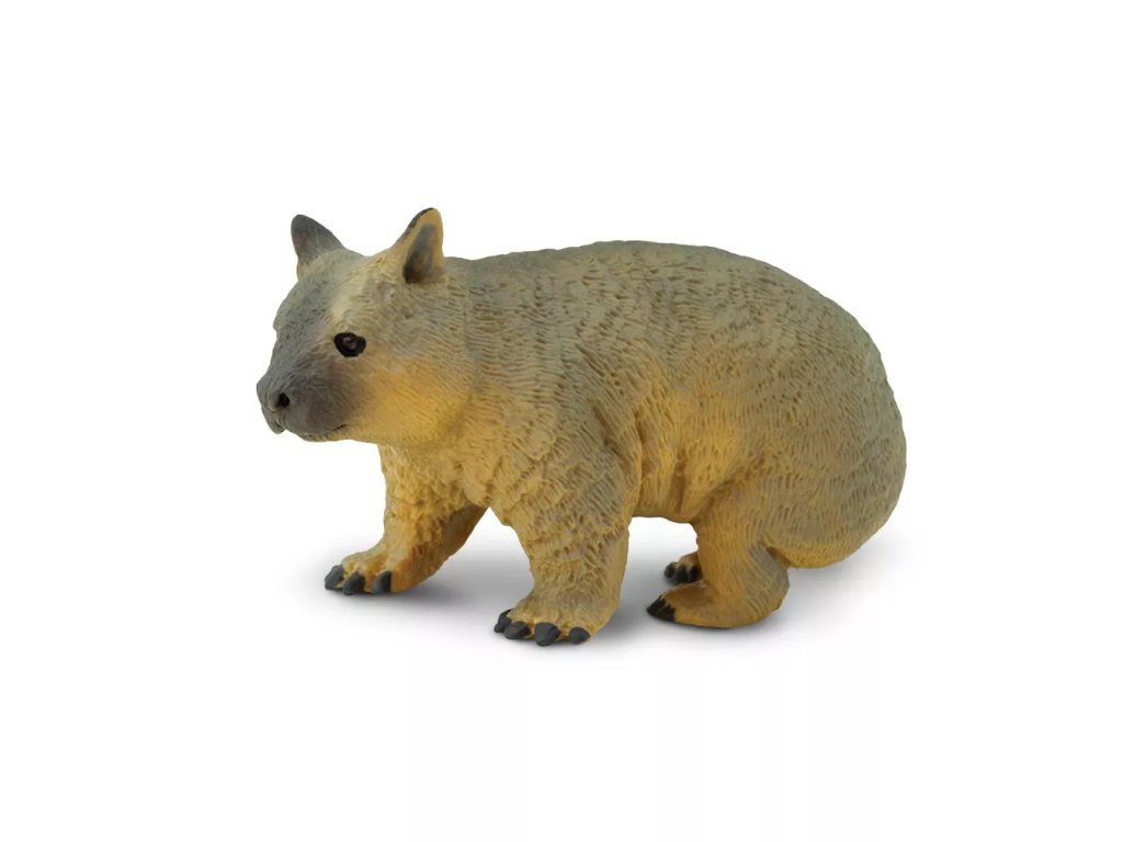 Figurka vombata, který po většinu roku žije samotářským způsobem života. Hrabe poměrně rozsáhlé, vysoce rozvětvené nory, které mají jen jediný vchod a které dokáže vybudovat i v těžko dostupných terénech, k čemuž mu napomáhají jeho silné drápy na končetinách. Dosahuje délky až 1 m, má širokou a hranatou hlavou, masivní končetiny, 2–3 cm dlouhý ocas. Váží až 25 kg a vyznačuje se hrubou a hustou, obvykle olivově zelenou až téměř černou srstí.