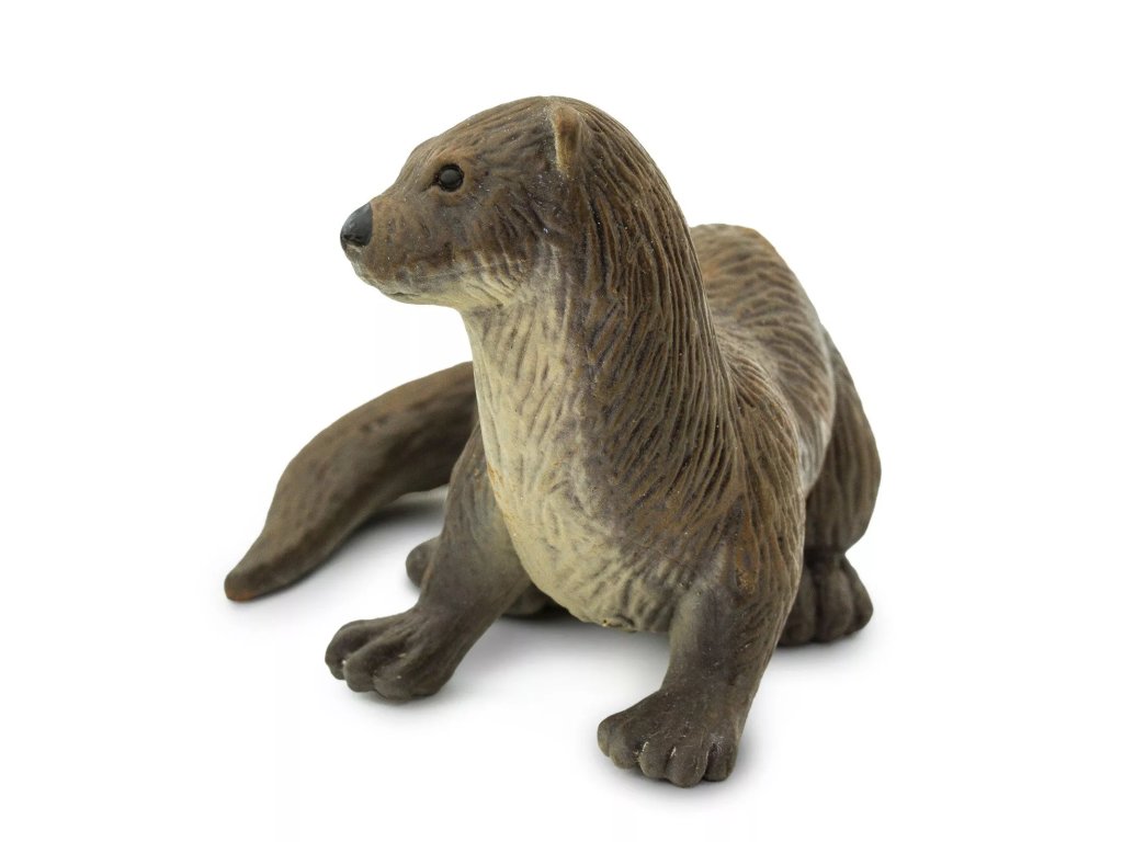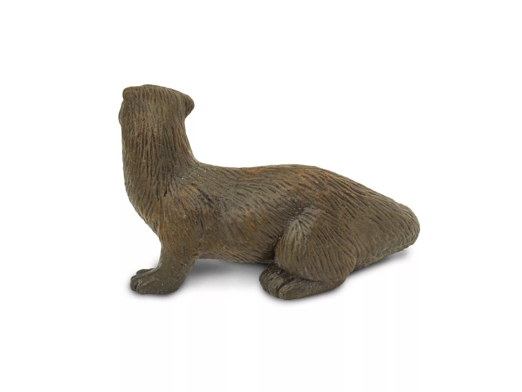 Figurka vydry říční, mazaně se usmívající předtím, než se opět ponoří do vody.