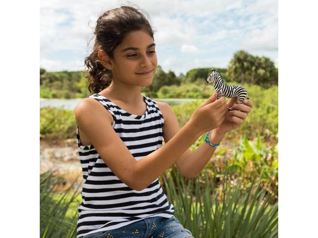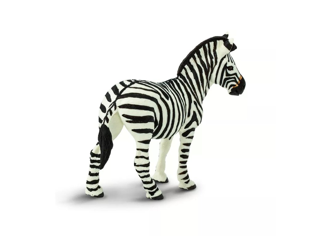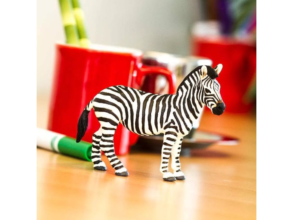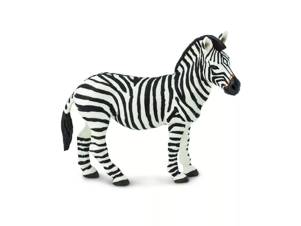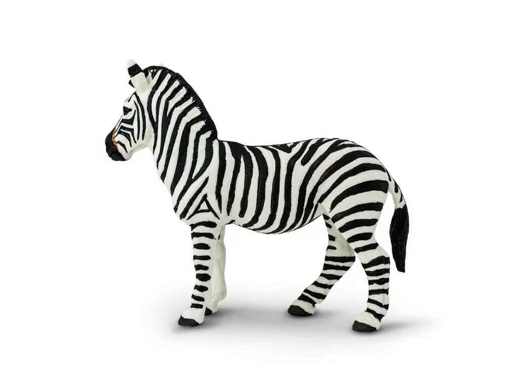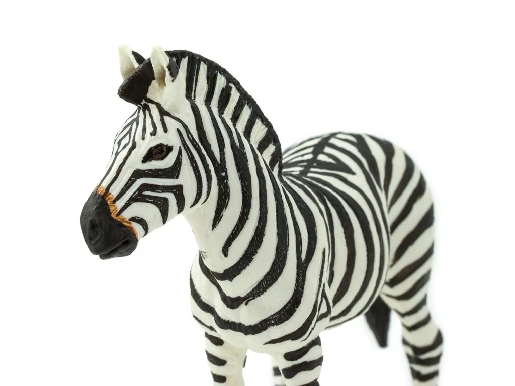 Figurka zebry, člena skupiny kopytníků, jejichž srst je charakteristicky bílo-černě pruhovaná. Podle vzoru pruhů se odlišují jednotlivé druhy zeber. Žijí obvykle v rodinných skupinách, které jsou tvořeny jedním hřebcem, doprovázeným klisnami a mláďaty.